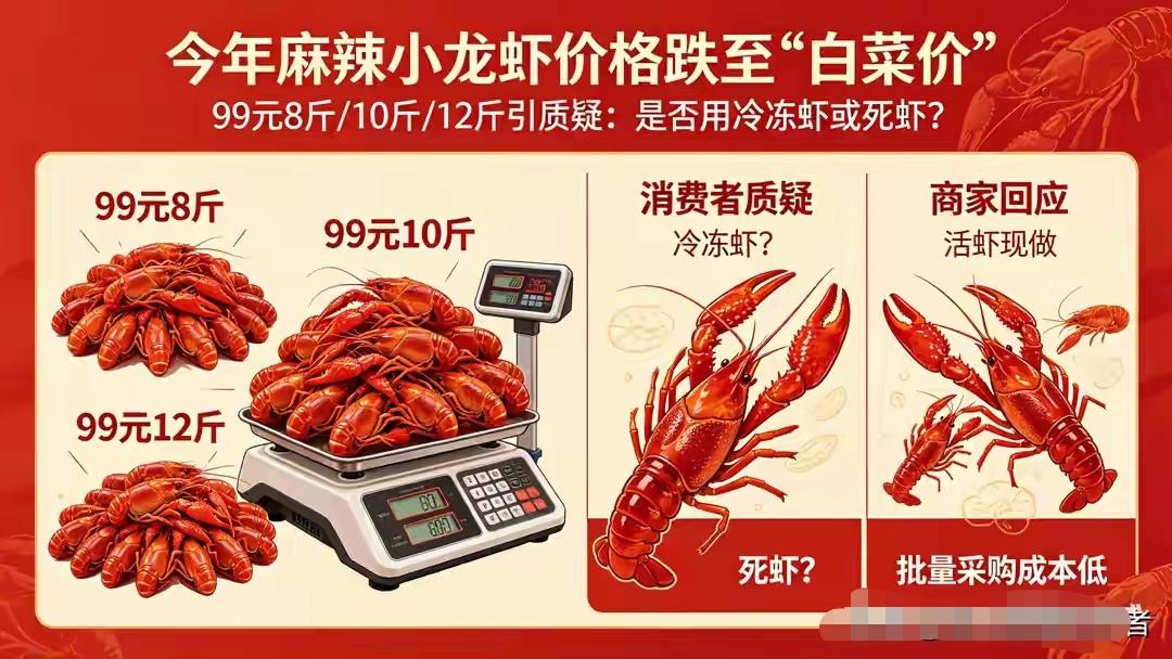 小龙虾今年的价格有的已经是推出了99元8斤甚至10斤,就这价格怎么不心动,放心这不是用的什么冷冻虾或者是死虾。因为今年的两个条件,让龙虾价格暴跌。