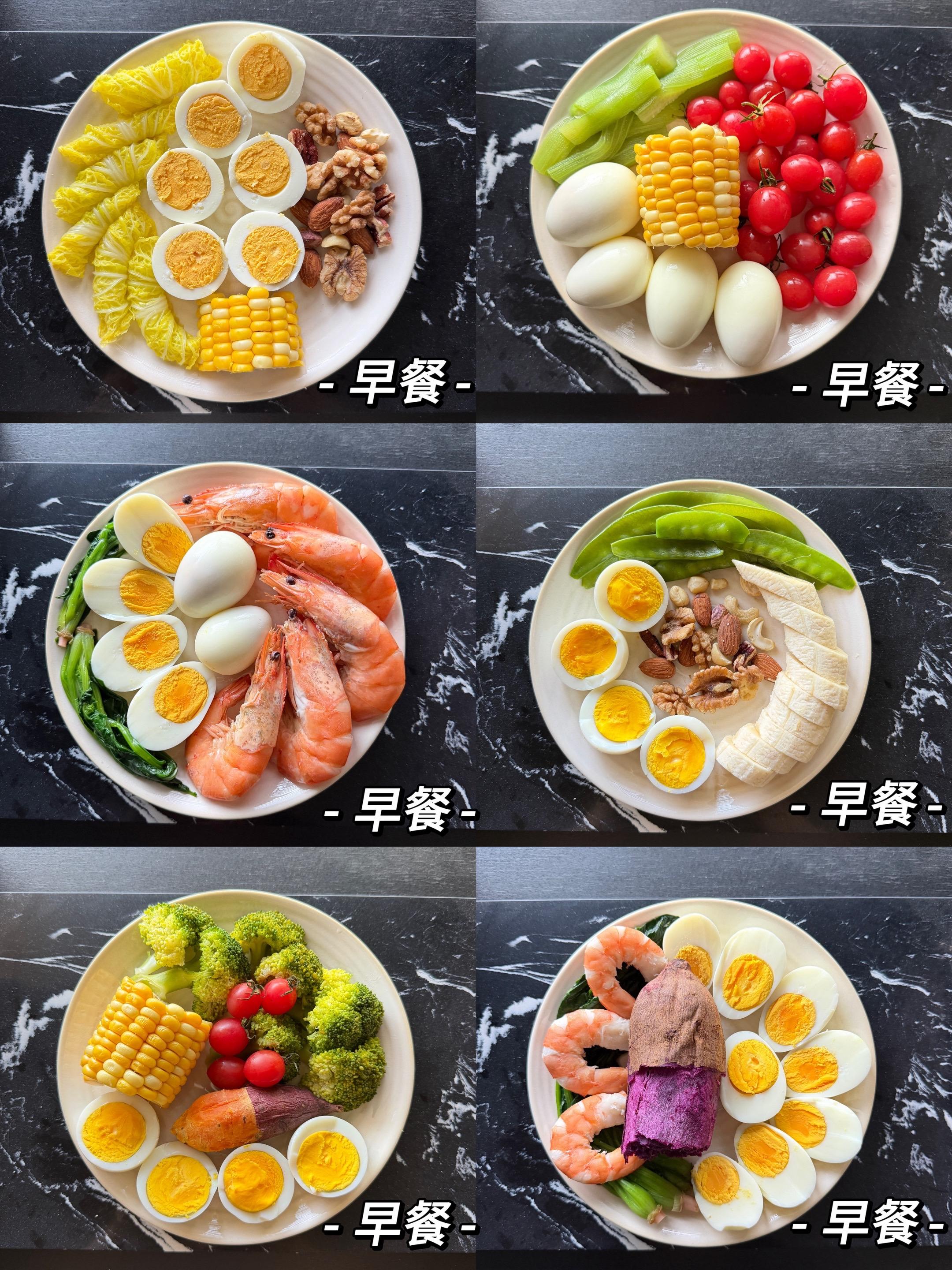 ✅早餐:慢碳(红薯/玉米/香蕉)+优质蛋白(溏心蛋)+维生素(小番茄/绿叶菜)