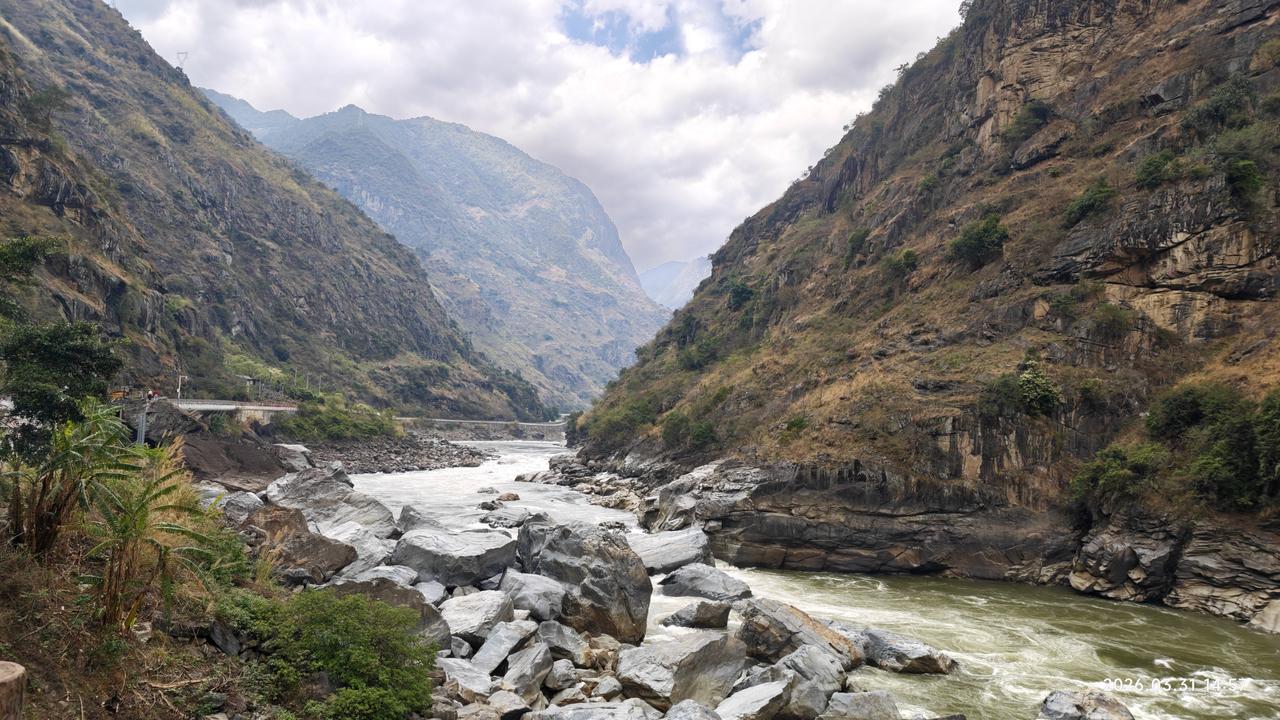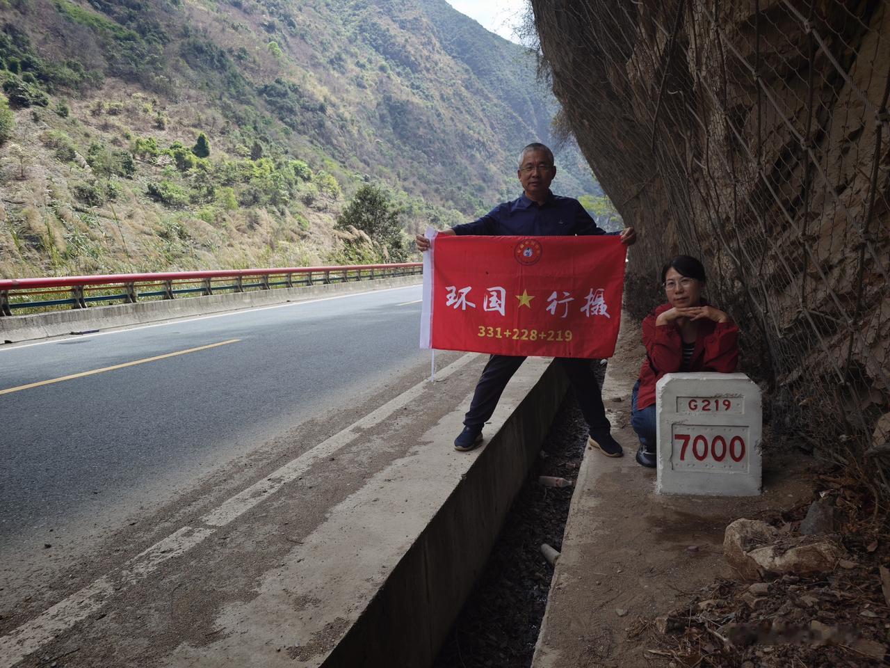 之后再到伟人峰观景。一个山峰的顶部真的有点儿像伟人的头像。然后在国道219的7000和6999路碑打卡。之前打过1万的,但9000和8000的错过了。下午3点到老虎跳,倒也没什么可看的,只是水浪冲击石头的轰鸣声很壮观。之后又到一个金满银滩,又路过飞来石,就在公路边。不错。