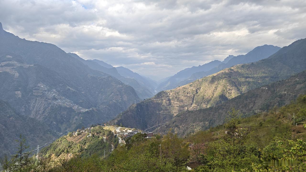 最后离开219,上坡800m首先到达老母登村,来的正是时候。皇冠山,雪山,峡谷和怒江,在耶稣光的映衬下非常漂亮。太美太美了。