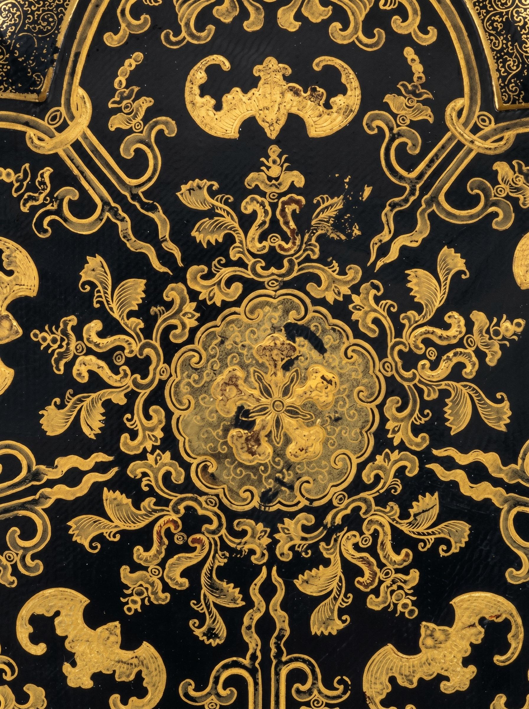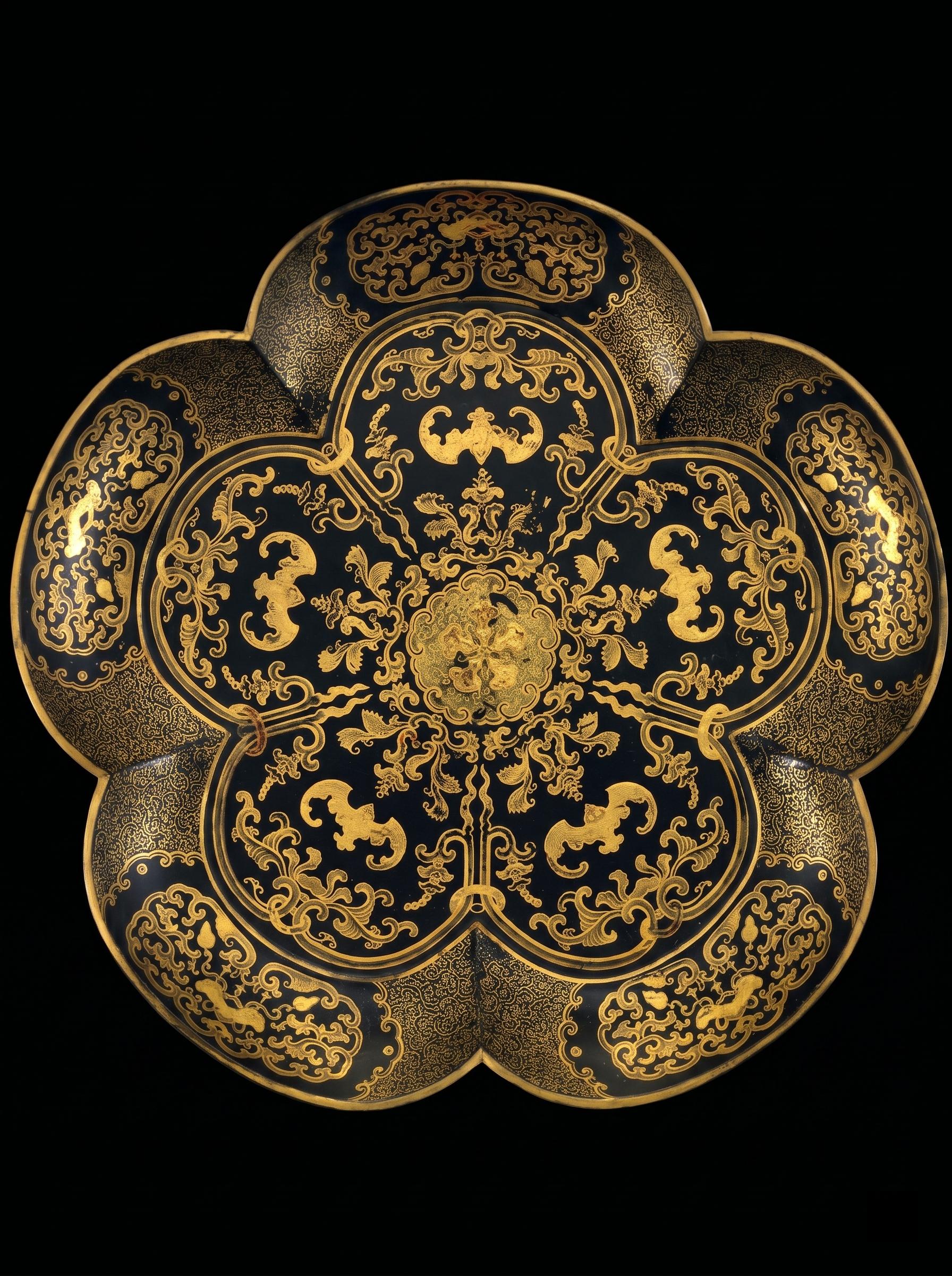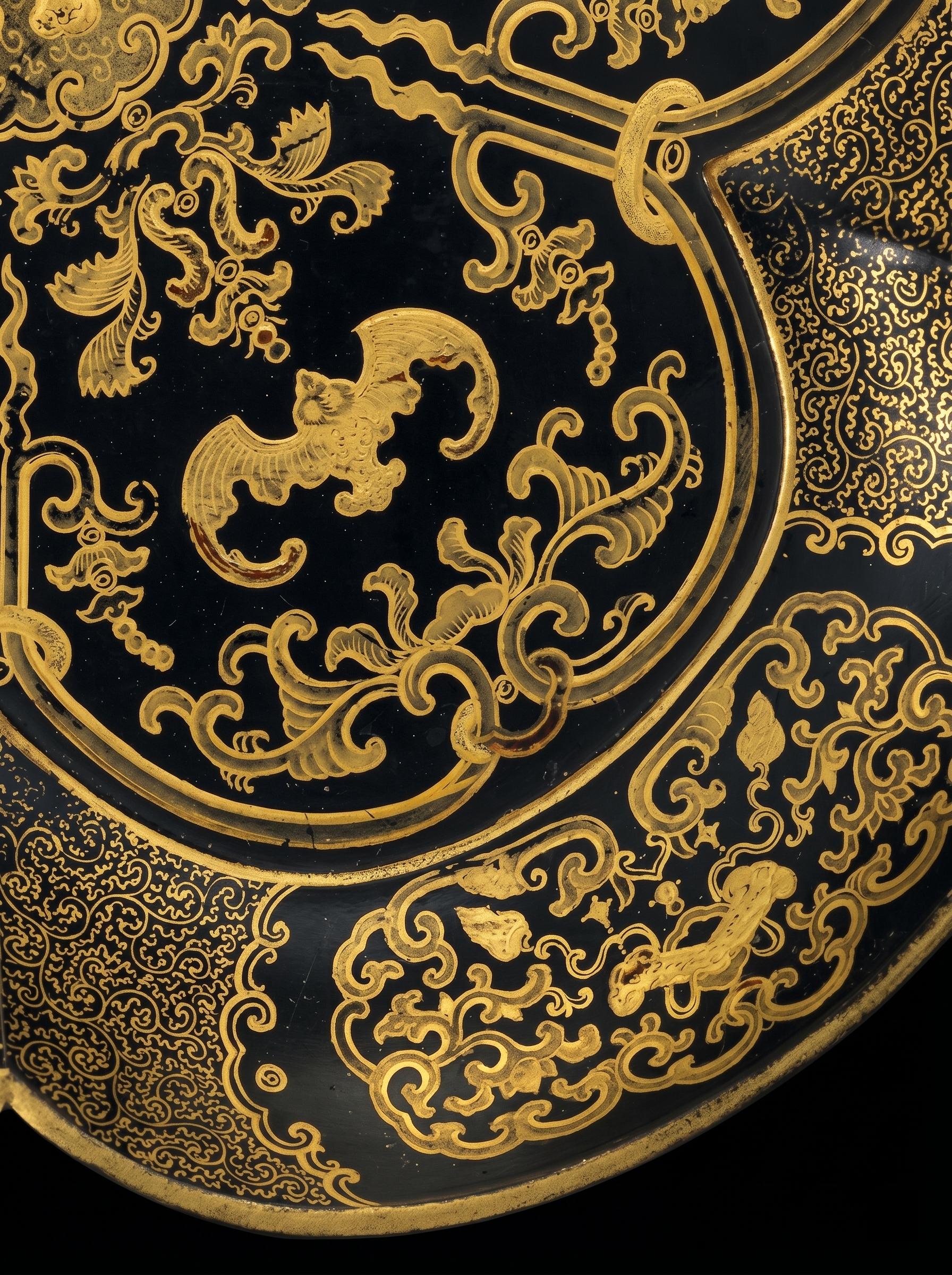 缠枝莲的叶片边缘,金粉堆叠出微小的厚度