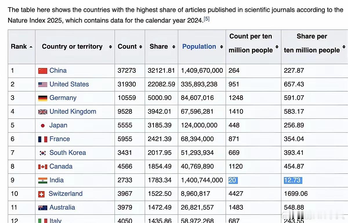 很多网友仍用软件外包、基建落后、种姓问题等的刻板印象看印度,却忽略了它工业成体系、技术能闭环、人口可持续的三大核心竞争力正在共振。这可能就是为什么印度这十多年经济表现比较好吧。2025自然指数跻身前十,只是一个显性信号,印度科研也在发力了。未来20年,它将是全球产业链、科技、地缘格局中不可忽视的强劲对手。我们需要提前布局、精准应对,才能在新一轮大国竞争中占据主动。特别吸取手机产业链被转移教训,控制产业链在中国稳定运行。