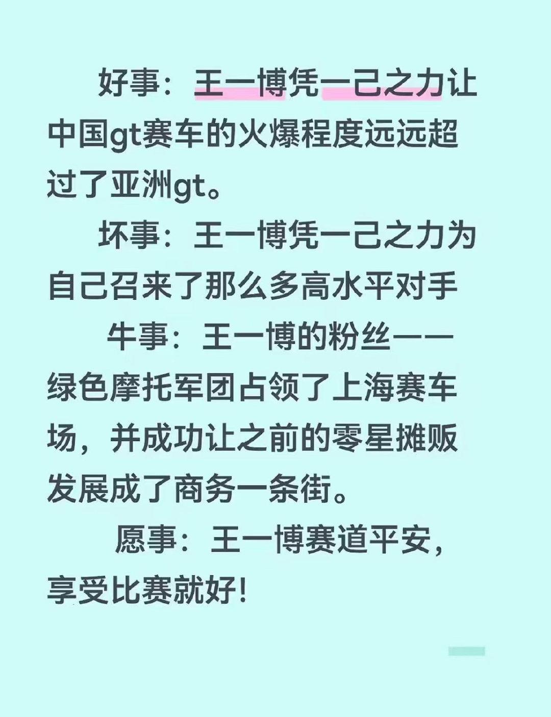 赞助自己拉,对手自己摇,观众自己带。还给自己招来了高手如云的对手,你真棒!五万人是场地的极限,绝不是摩托姐姐的极限!们以后线下活动万人参与请参考王一博!哈哈哈哈果然,能卷王一博的只有王一博自己![笑哭][笑哭][赞][赞]💚💚王一博又进步了