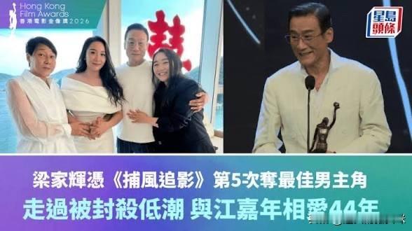 话说第44届香港电影金像奖就在昨晚圆满落下帷幕,回看这个得奖名单,最引人注目的莫过于梁家辉凭借着《捕风捉影》第五次夺得最佳男主角,哇,见到家辉哥穿着白色西装捧着影帝奖杯的照片简直同十年前如出一辙,不得不承认香港娱乐圈早已经时光停留多年啊,不过好在女主角方面就由我地都不太熟悉的新人廖子妤凭借着《像我这样的爱情》勇夺殊荣,而之前呼声最高的滕丽名凭借《寻秦记》捧女配角就令大家大失所望,皆因阿藤不是输给前辈鲍起静,而是输给上一届的金像奖影后得主连诗雅阿,更令人觉得耐人寻味的是,古仔大张旗鼓拍的《寻秦记》颗粒无收,捧得奖座的电影全部都是我地没怎么看过的港产片。