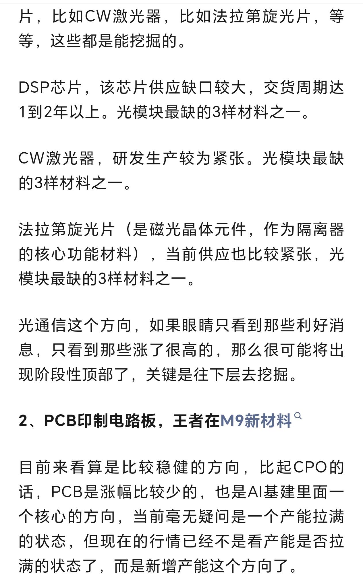 cpo光模块最紧缺的3样材料