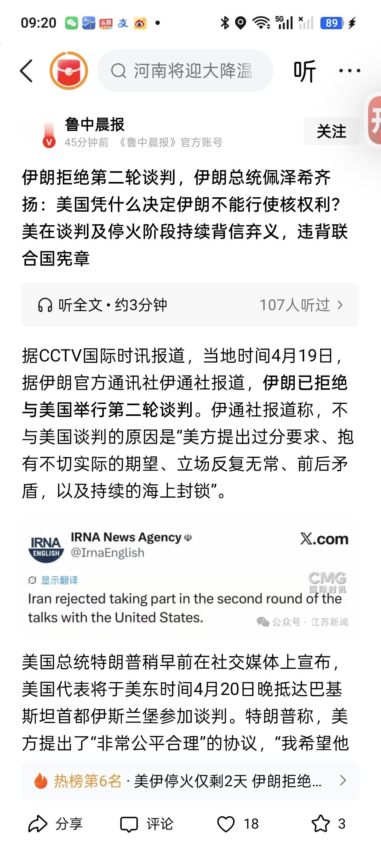 A股,美伊大消息,又完犊子了。看看今天有没有消息吧!伊方拒绝谈判,除非解除,海上封锁,现在就在美方,下一步棋如何了,如果解除还是封锁,将会继续谈判。