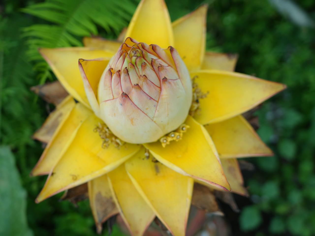 第一次见地涌金莲,是在纳溪普照山寺里。刚进寺门,香火味混着山里的草木气飘过来,我先闻着味儿,抬头就看见院子里立着几株奇怪的花。它们不像别的花那样开在树枝上,倒像是从土里直接 “冒” 出来的,粗粗的茎干顶着层层叠叠的金黄,像一朵不会谢的莲花。后来才知道,这就是传说里的地涌金莲,也有人叫它千瓣莲花,是佛前的圣花。
