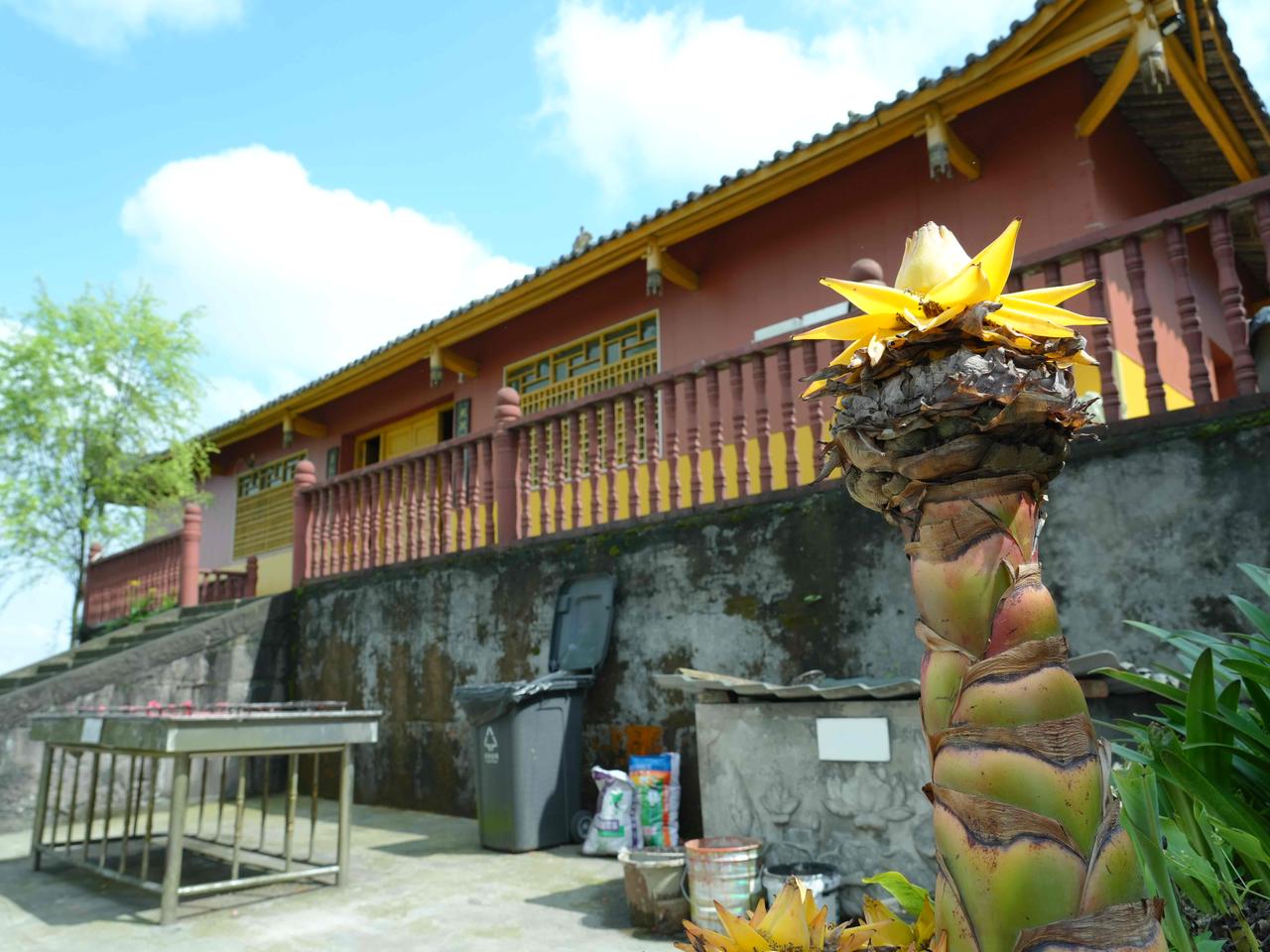 纳溪的红土,养过竹海的楠竹,也养过岩坡上的杉芽,都是在不肥的地里扎着根,长得又直又稳,这地涌金莲也是一样。它看着像佛前的娇贵花,其实皮实得很,寺里也没人特意打理,就那样立着,照样开得精神,黄瓣儿层层舒展,风吹过的时候,轻轻晃一下,带着点淡淡的清香,不浓,却让人心里静下来。