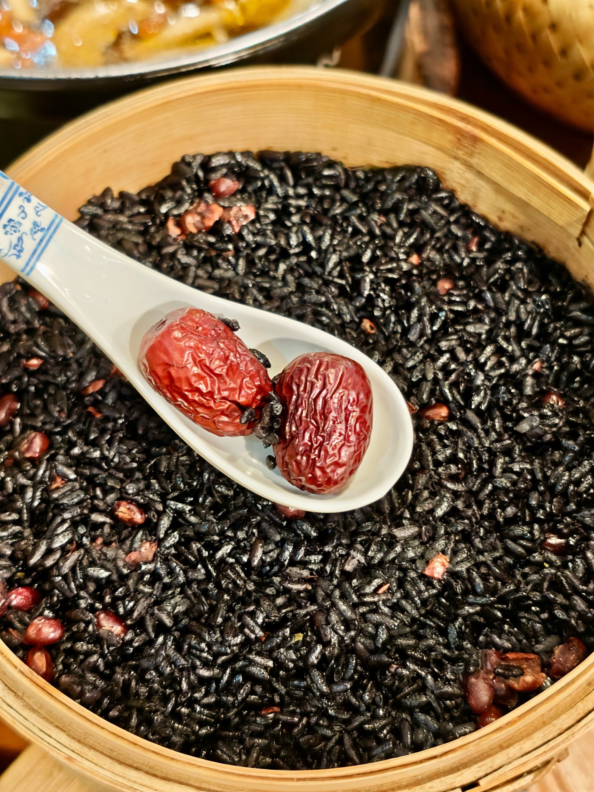 4️⃣.乌米饭,乌黑油亮,软糯香甜,还带着淡淡的草木香。