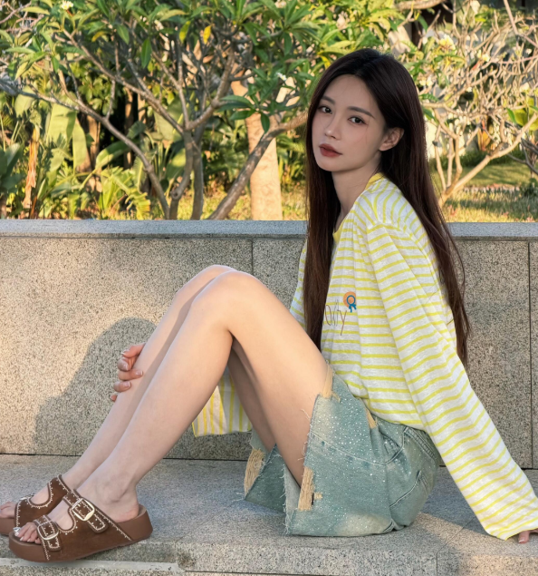 沈梦辰私服穿搭越来越时髦 黄色条纹长袖+牛仔短裤,休闲随性又减龄!