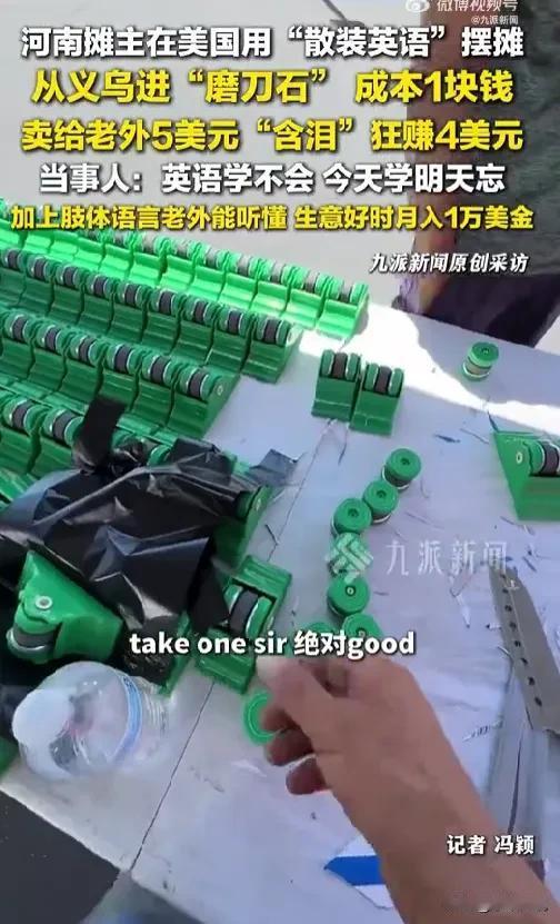 所以说,还是选对了路很重要,他这就是选对了适合的东西,义乌的小商品成本低,磨刀器又是刚需的小工具,只要他做好示范就行了,不用说什么英语就能卖。