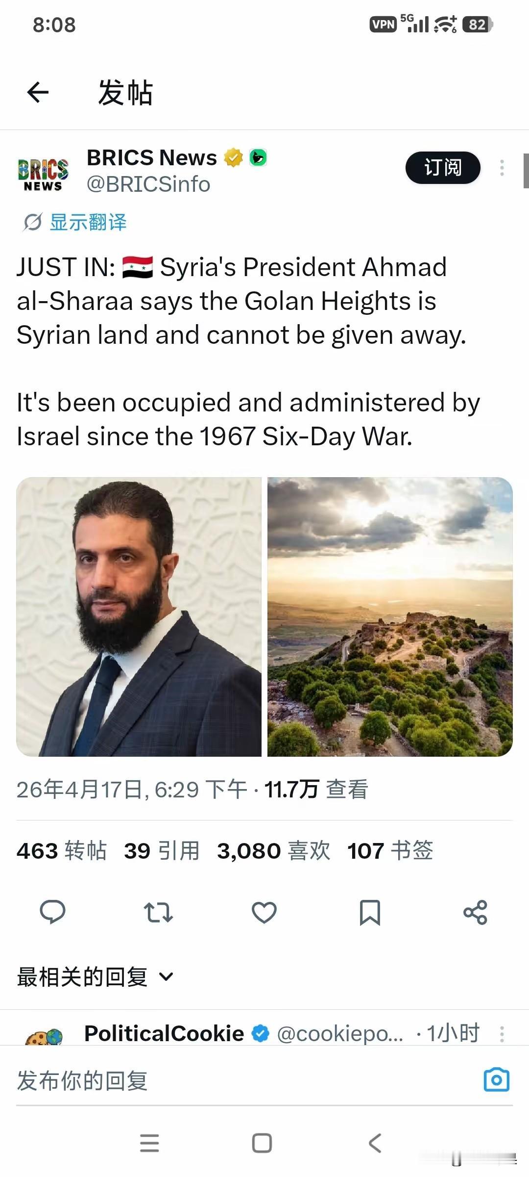 叙利亚新总统朱拉尼,真是闷声‘干大事’?!借助以色列和伊朗打的不可开交之际,收腹戈兰高地。并且向世界宣布,戈兰高地是叙利亚的固有领土,任何外来侵占都是非法无效的!叙利亚总统朱拉尼,养精蓄锐,厚积薄发,一举哪会属于叙利亚的领土?朱拉尼总统有胆有识,有勇有谋,懂得暗藏实力,视机而动!维护叙利亚领土完整,维护叙利亚国家主权的总统,是符合叙利亚民众利益的总统。