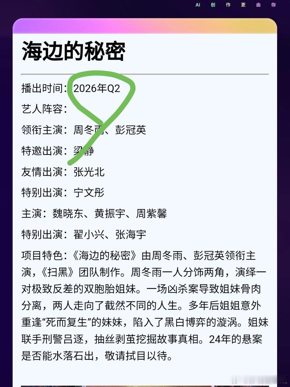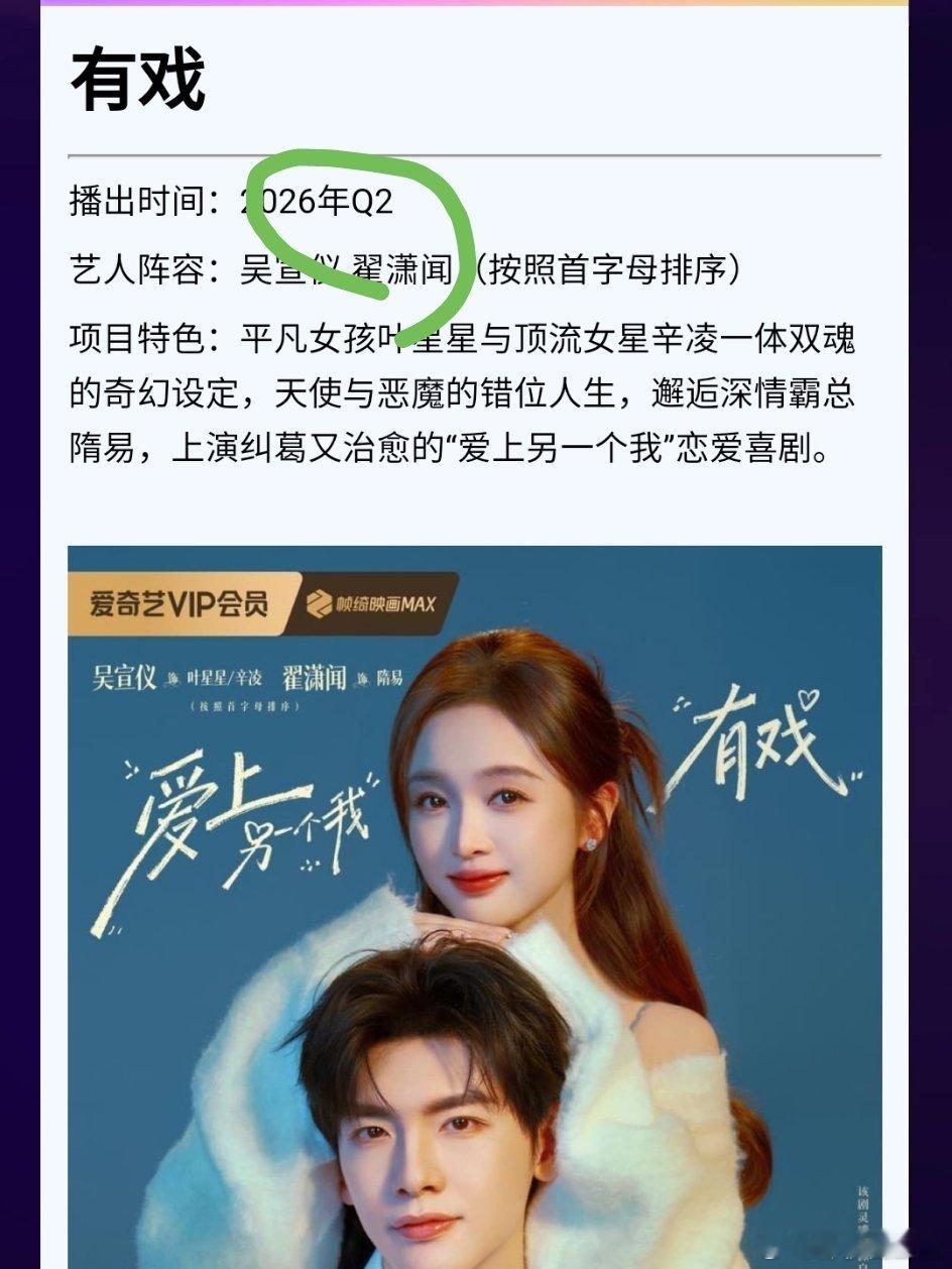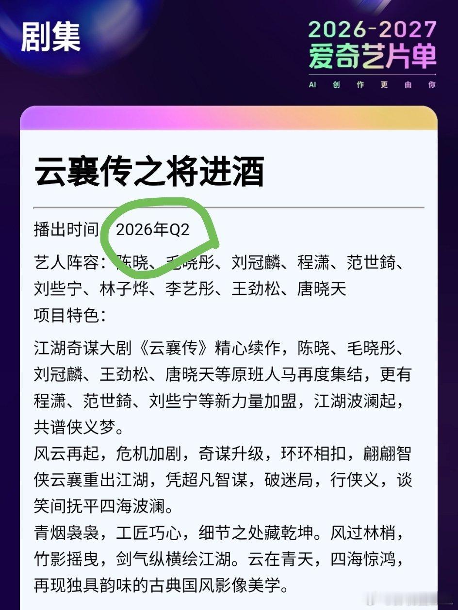 爱奇艺世界大会 桃Q2预排播陈晓《云襄传之将进酒》影视圈豆豆许凯周也《一瓯春》虞书欣《灿如繁星》吴宣仪翟潇闻《有戏》周冬雨彭冠英《海边的秘密》朱正廷卢洋洋《人间惊鸿客》2026爱奇艺造梦片单