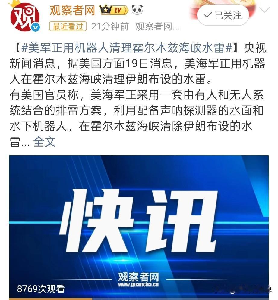 停火倒计时,美军竟派水面+水下机器人在霍尔木兹海峡强行扫雷,还吹是高科技作战…