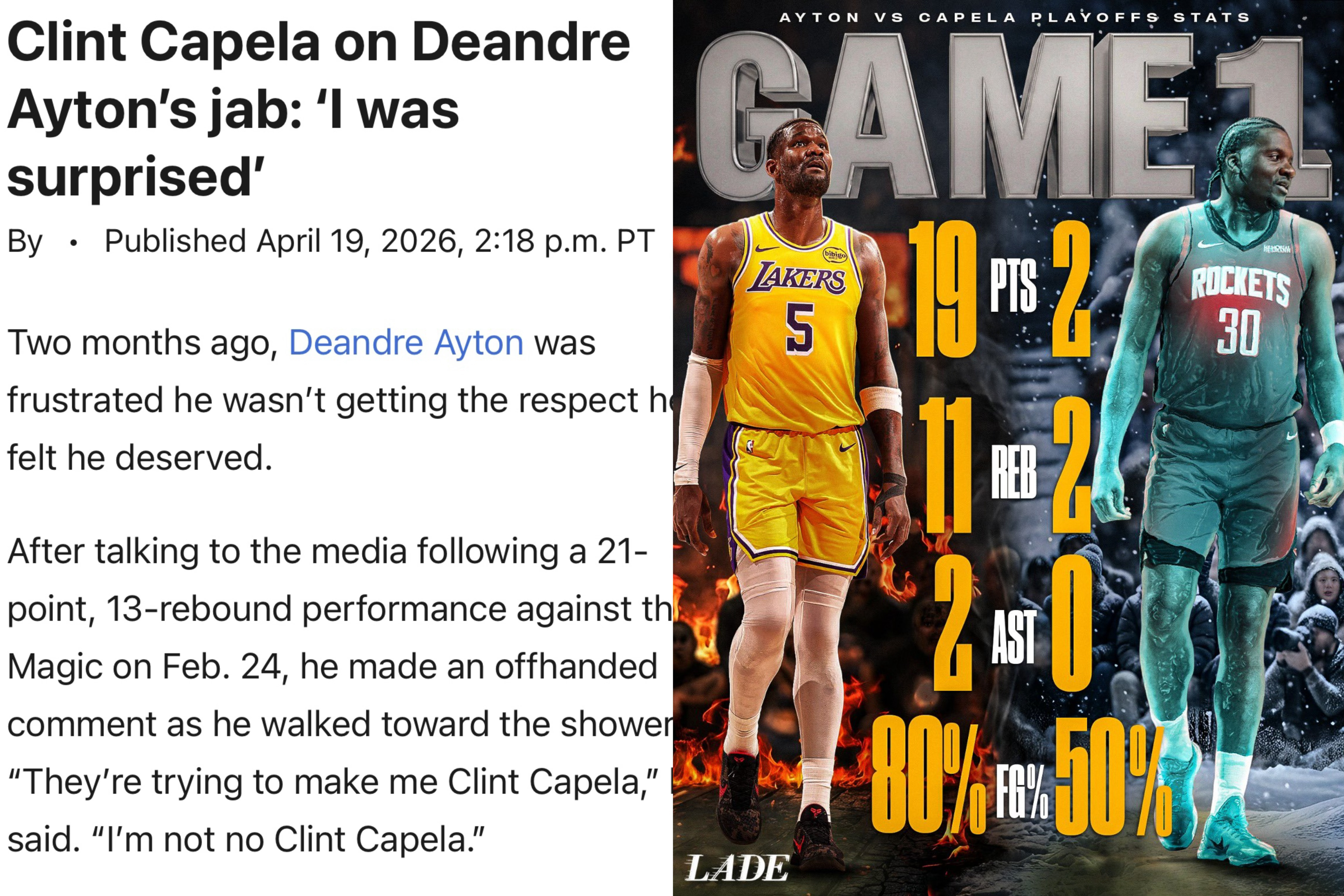 火箭中锋卡佩拉今日接受《加州邮报》再谈艾顿之前的言论时表示: