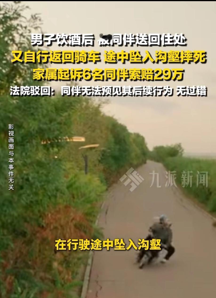 万万没想到!云南大理一男子参加朋友聚会,喝醉后同伴把他安全送回家,谁知他竟独自折返回来取车,之后骑车回家,结果途中坠沟身亡。家属悲痛之下把6名同伴告上法庭,要求赔偿29万,法院这样判了,引无数网友点赞。