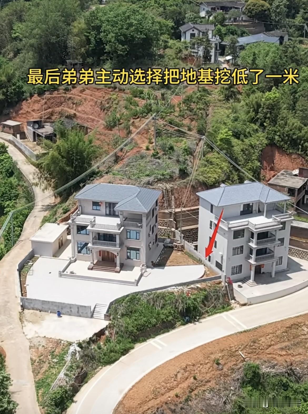 村里两兄弟建房🏠一开始就想 地基高度一样并排在一起‼️ 最后主动选择把地基挖低