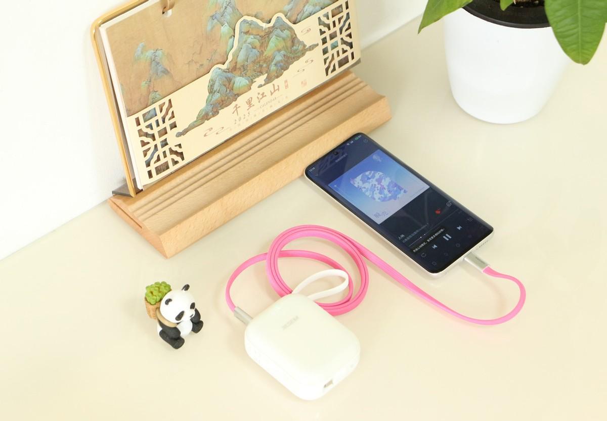 线材还能收纳在机身凹槽里,不缠绕、不凌乱,甚至能当简易手绳,拎着就走,实用性拉满!