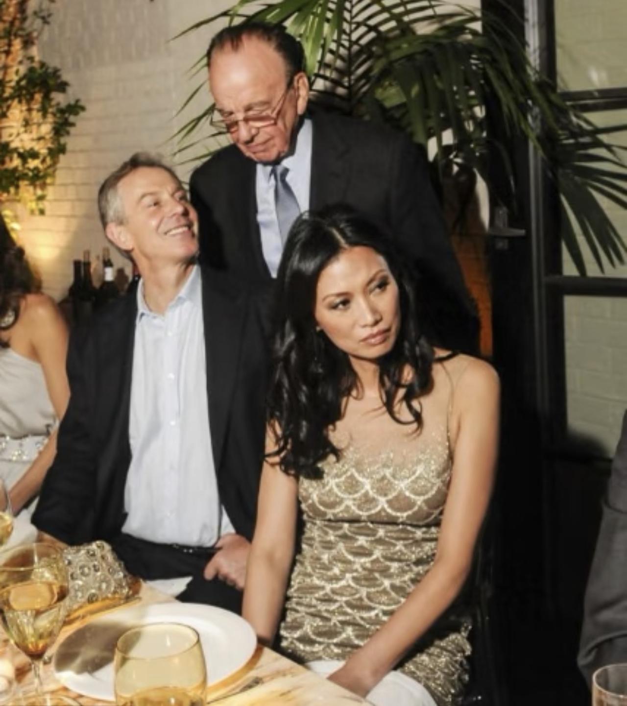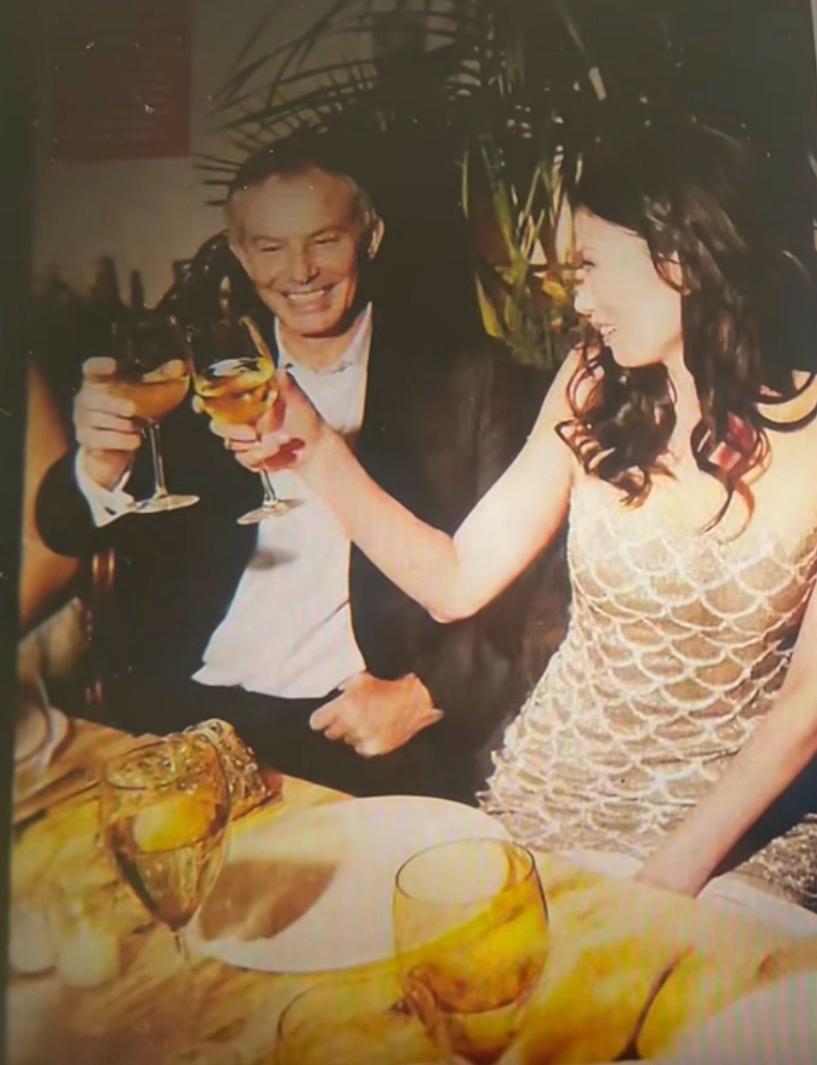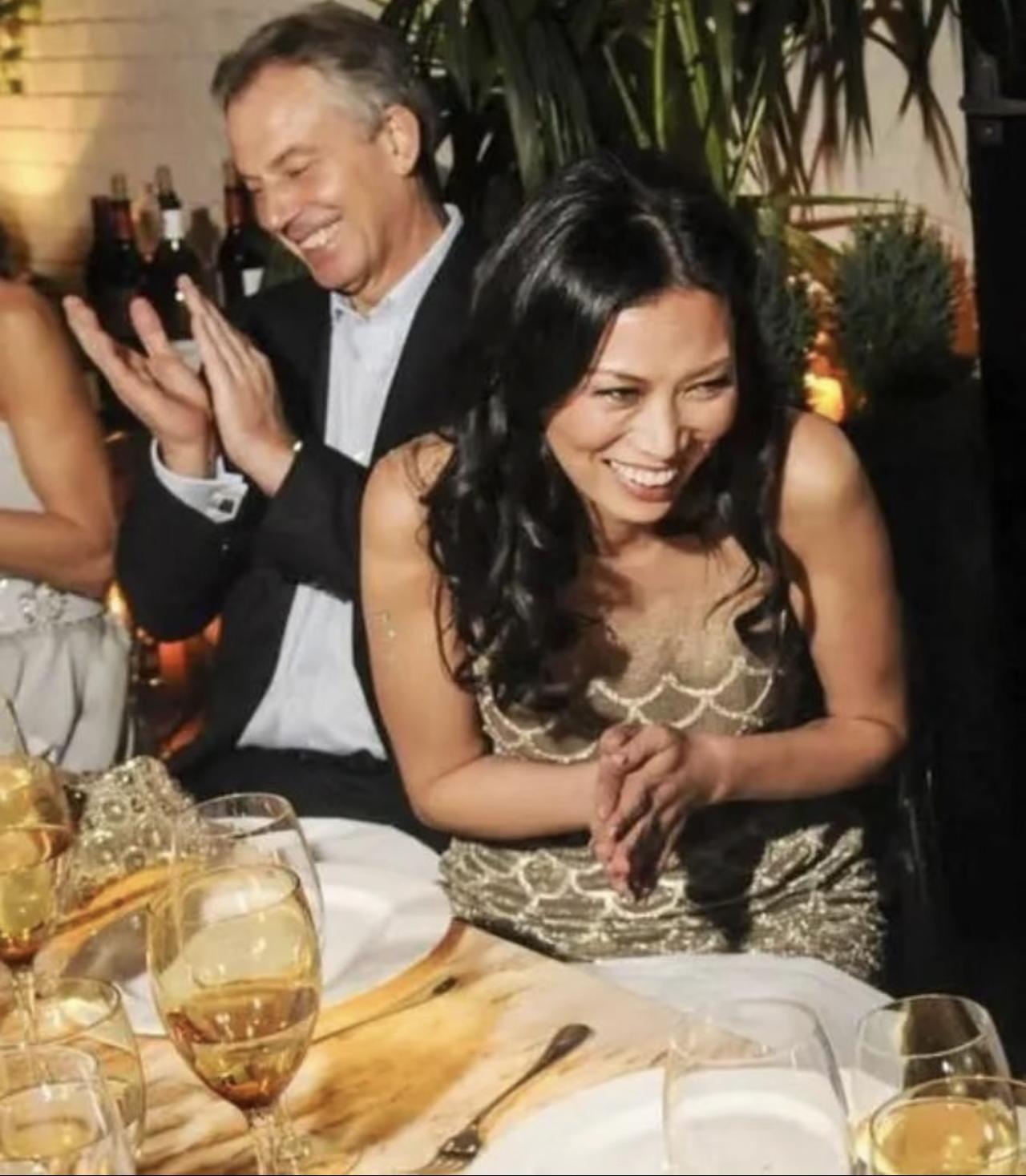 当时,来了很多各界名流,布莱尔也前来参加,并坐在邓文迪旁边的画面。