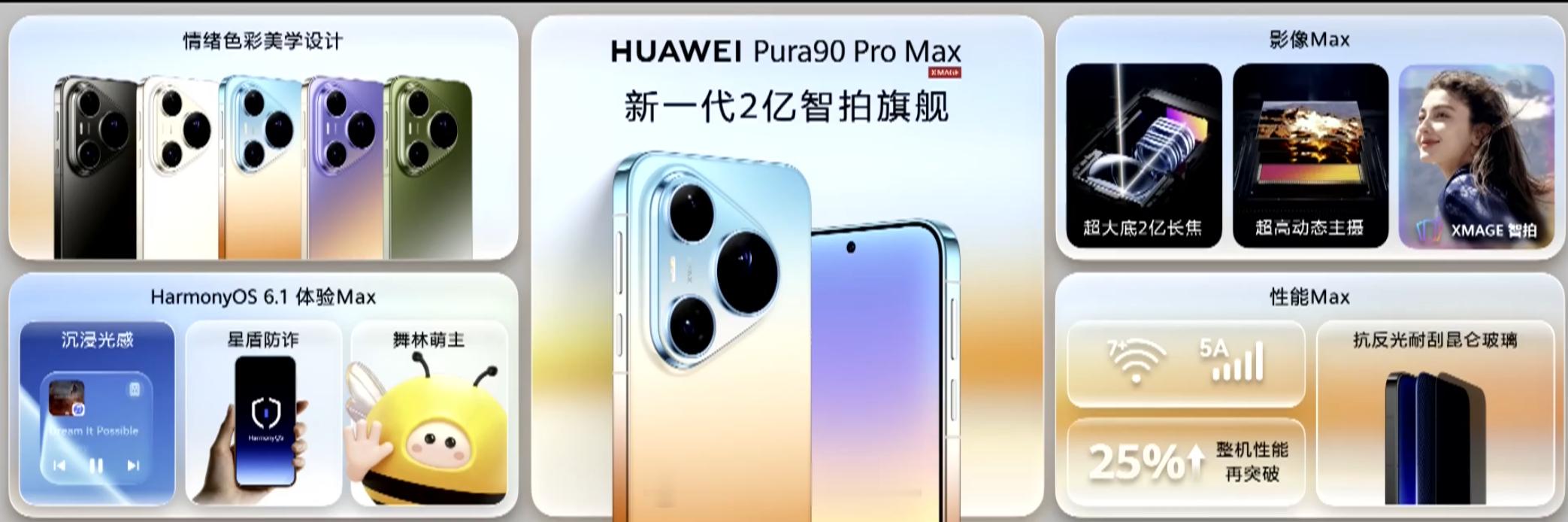 补一下配置,华为 Pura 90 Pro Max 发布,12GB+256GB 售价 6499 元,12GB+512GB 售价 6999 元,16GB+512GB 售价 7499 元,16GB+1TB 售价 8499 元;