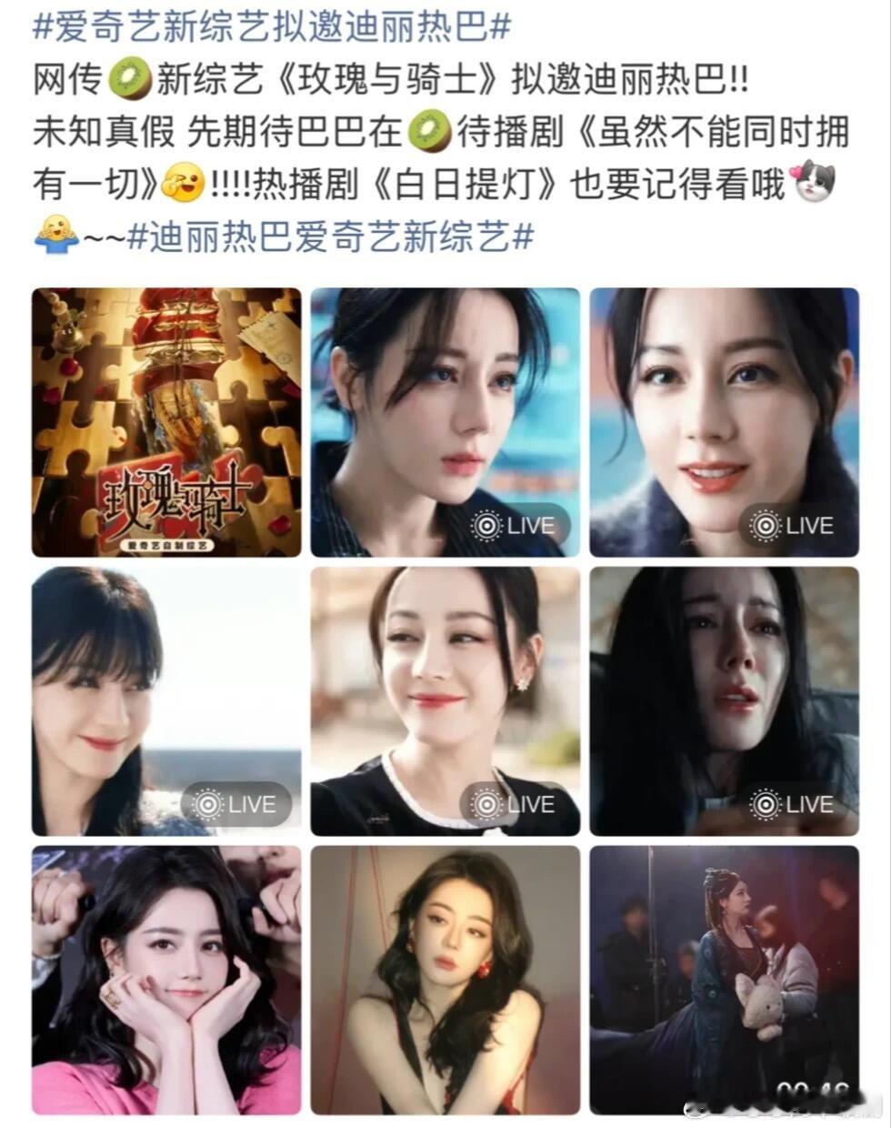 迪丽热巴爱奇艺新综艺《玫瑰与骑士》? 网传新综艺《玫瑰与骑士》拟邀迪丽热巴!!据