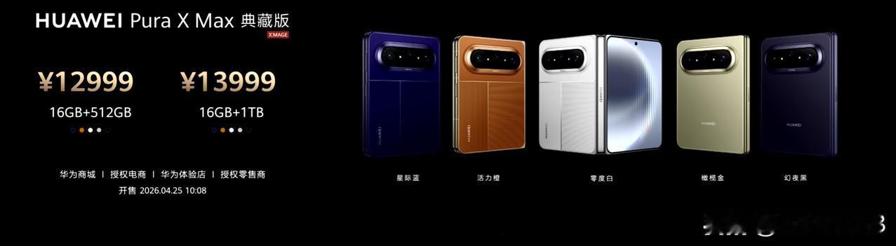 华为 Pura X Max 发布,标准版 12+256GB 售价 10999 元、12+512GB 售价 11999 元,典藏版 16+512GB 售价 12999 元、16GB+1TB 售价 13999 元。