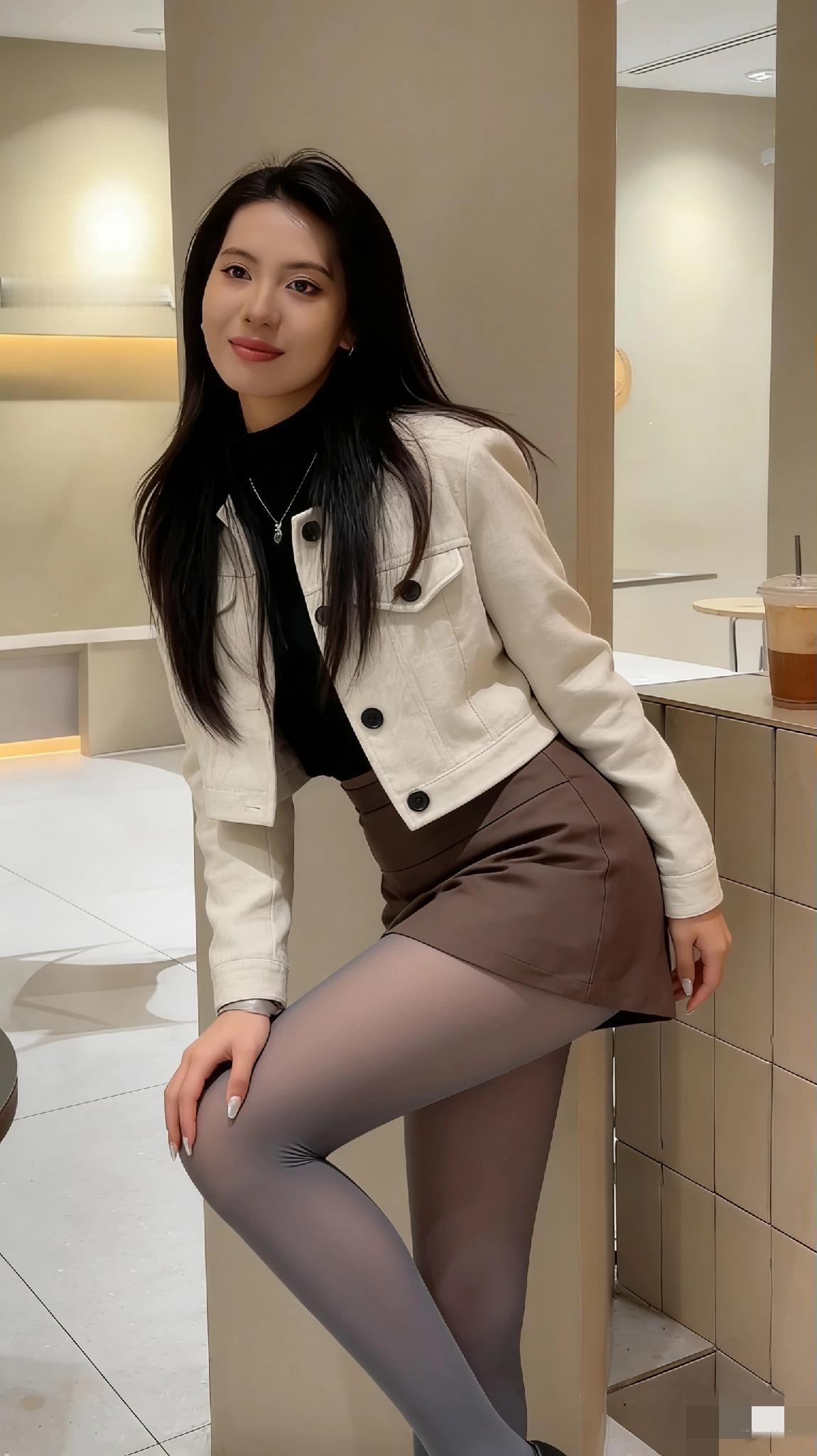 优雅气质穿搭,米色外套搭配棕色短裙,尽显时尚魅力! 这位女生的穿搭是兼具温柔气质