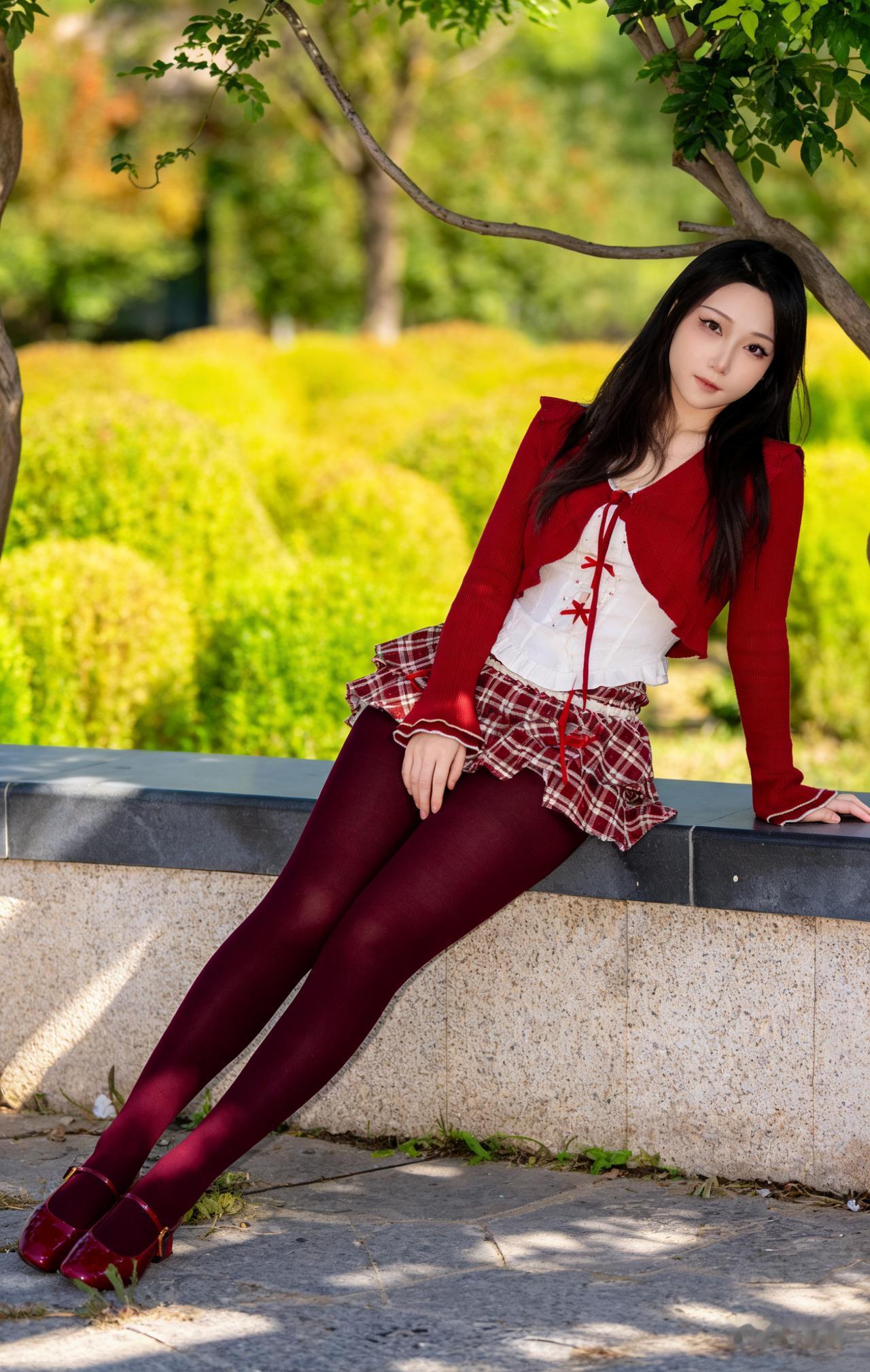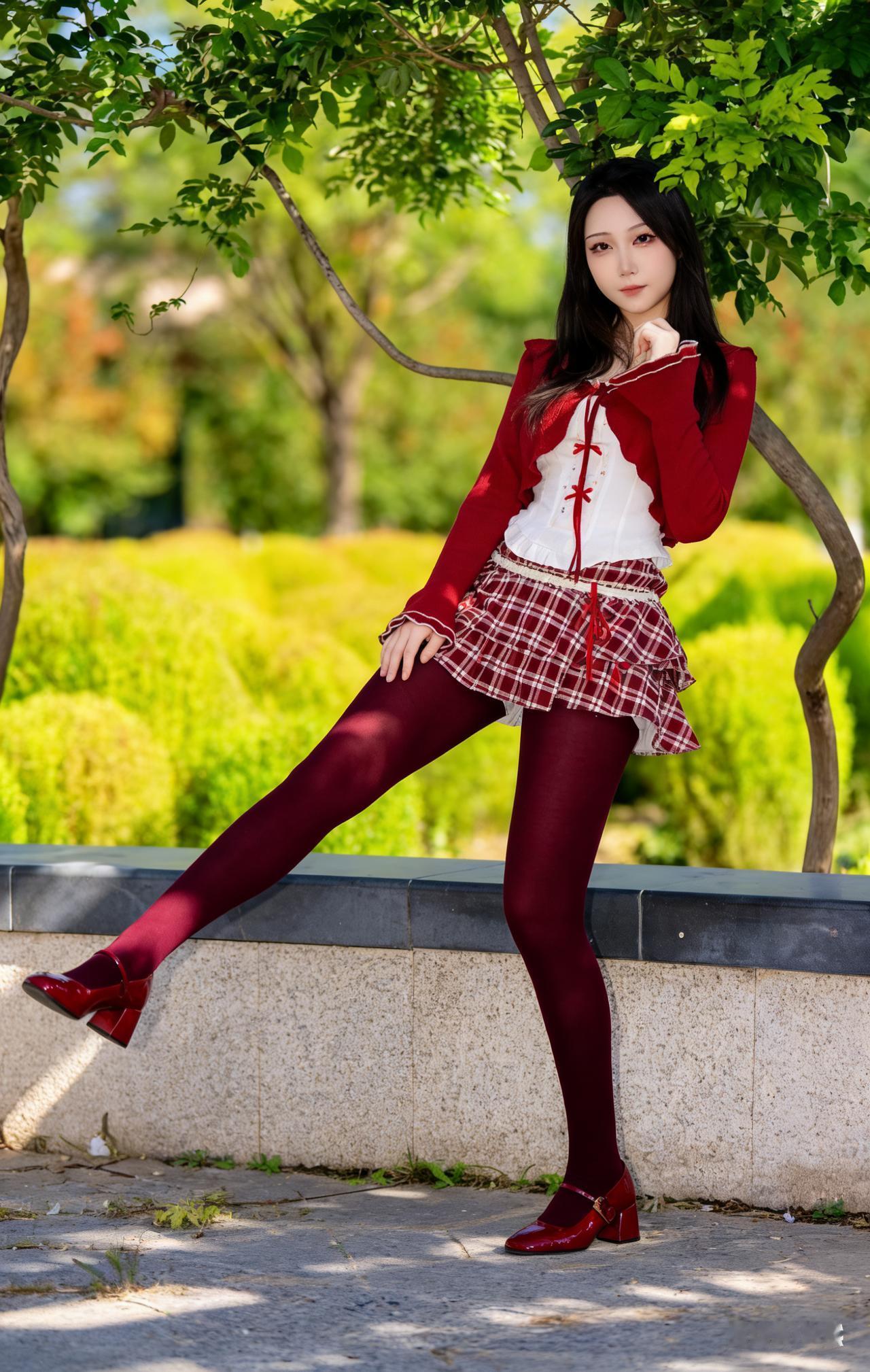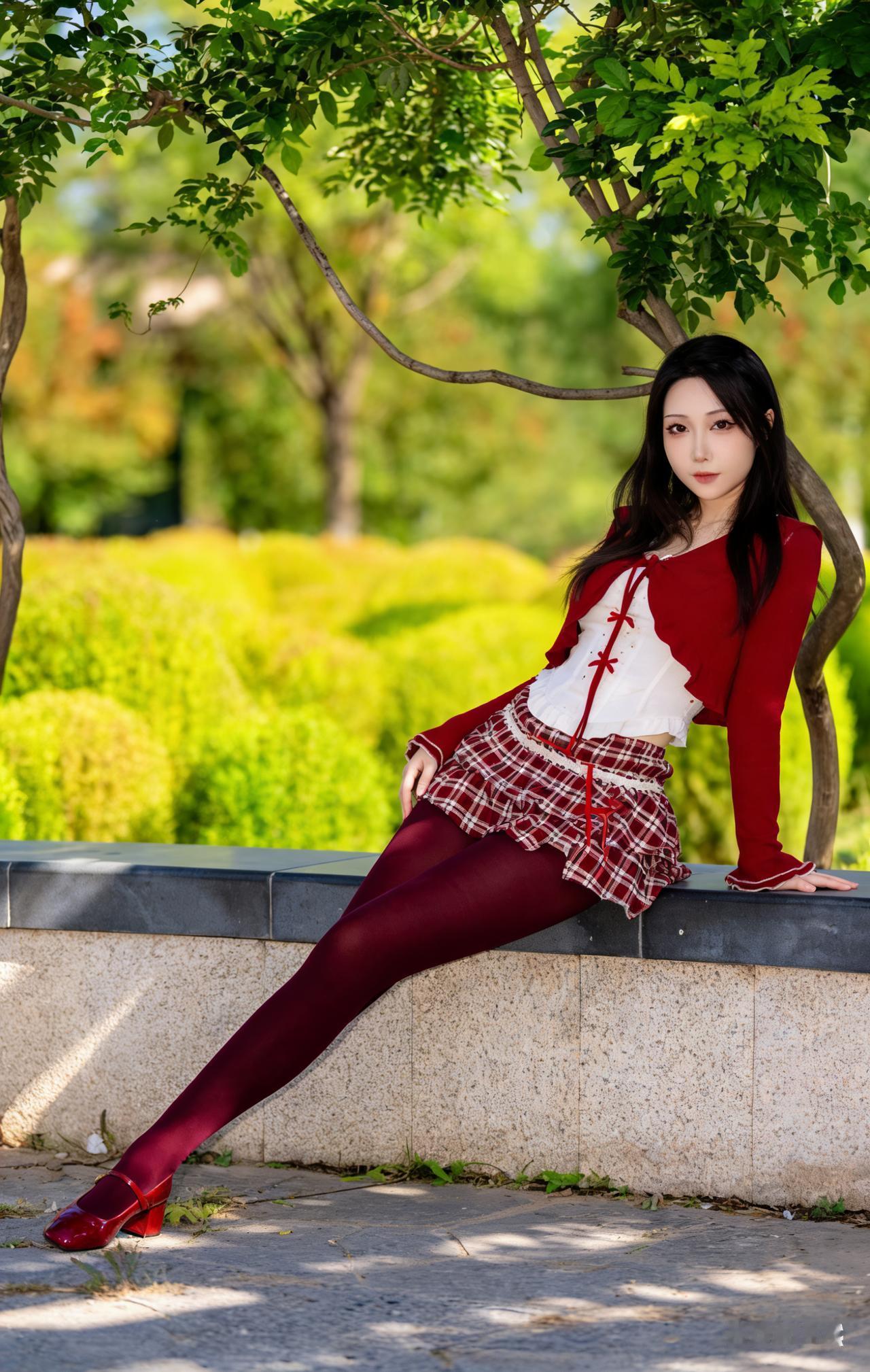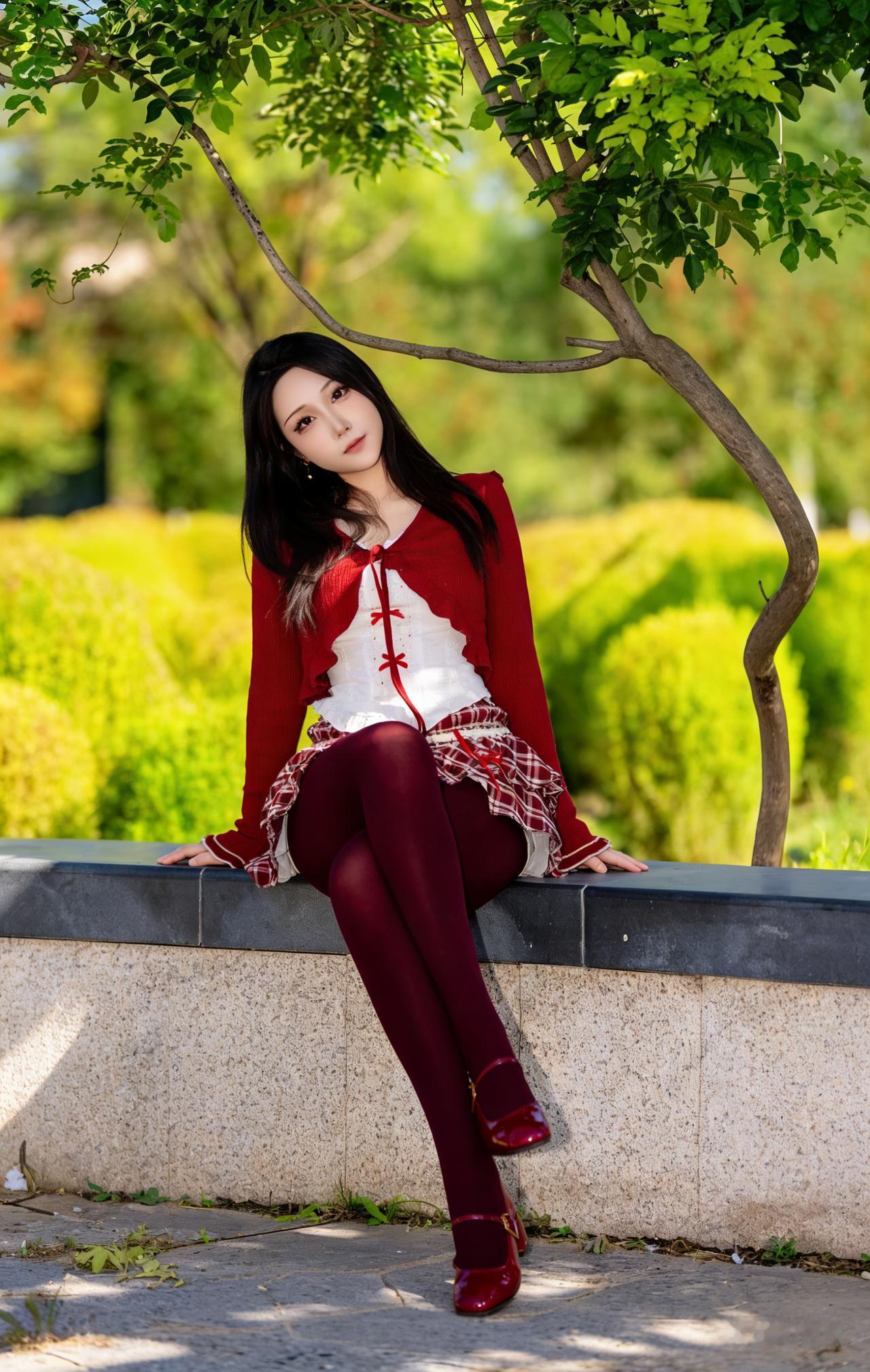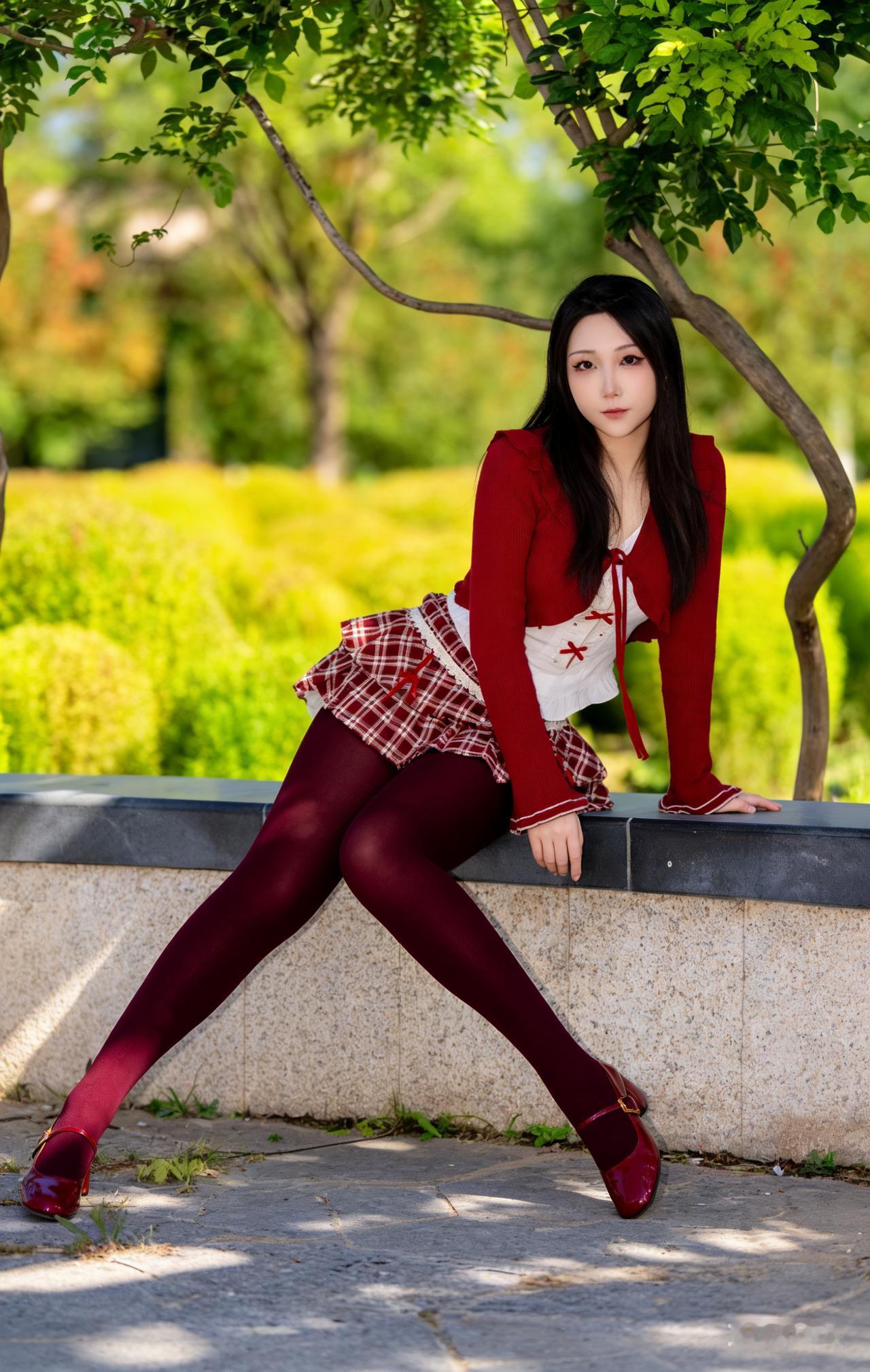 夏日红裙少女,树荫下悠然自得 美女人像群 高清美女 红色裙子真的很好看吗? 长腿