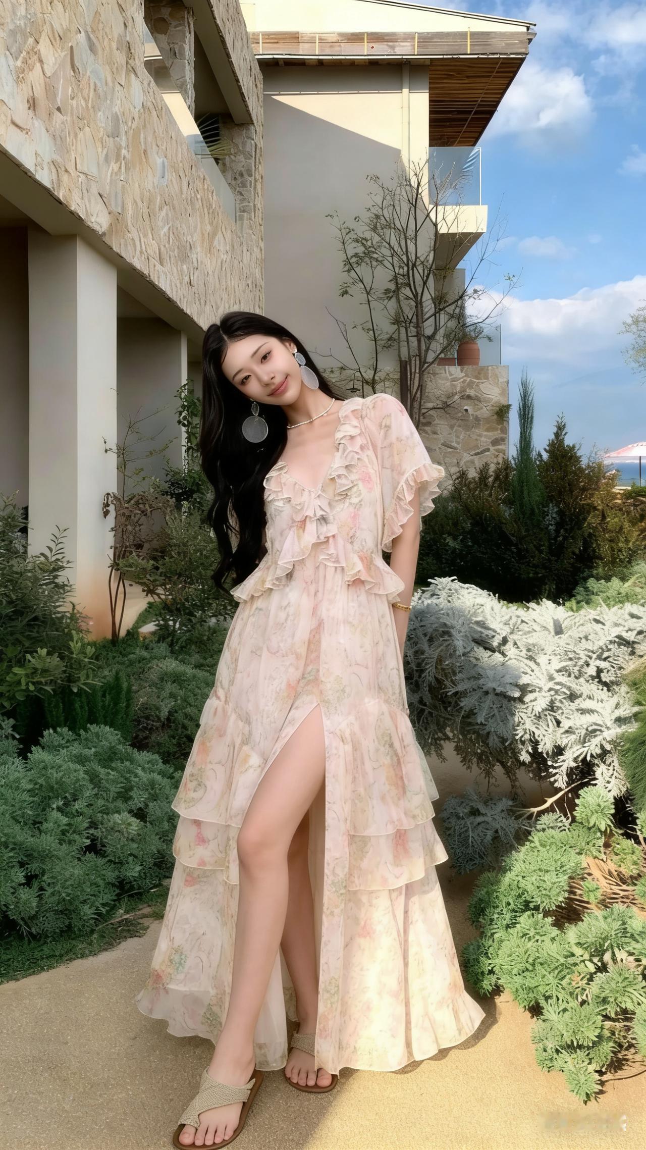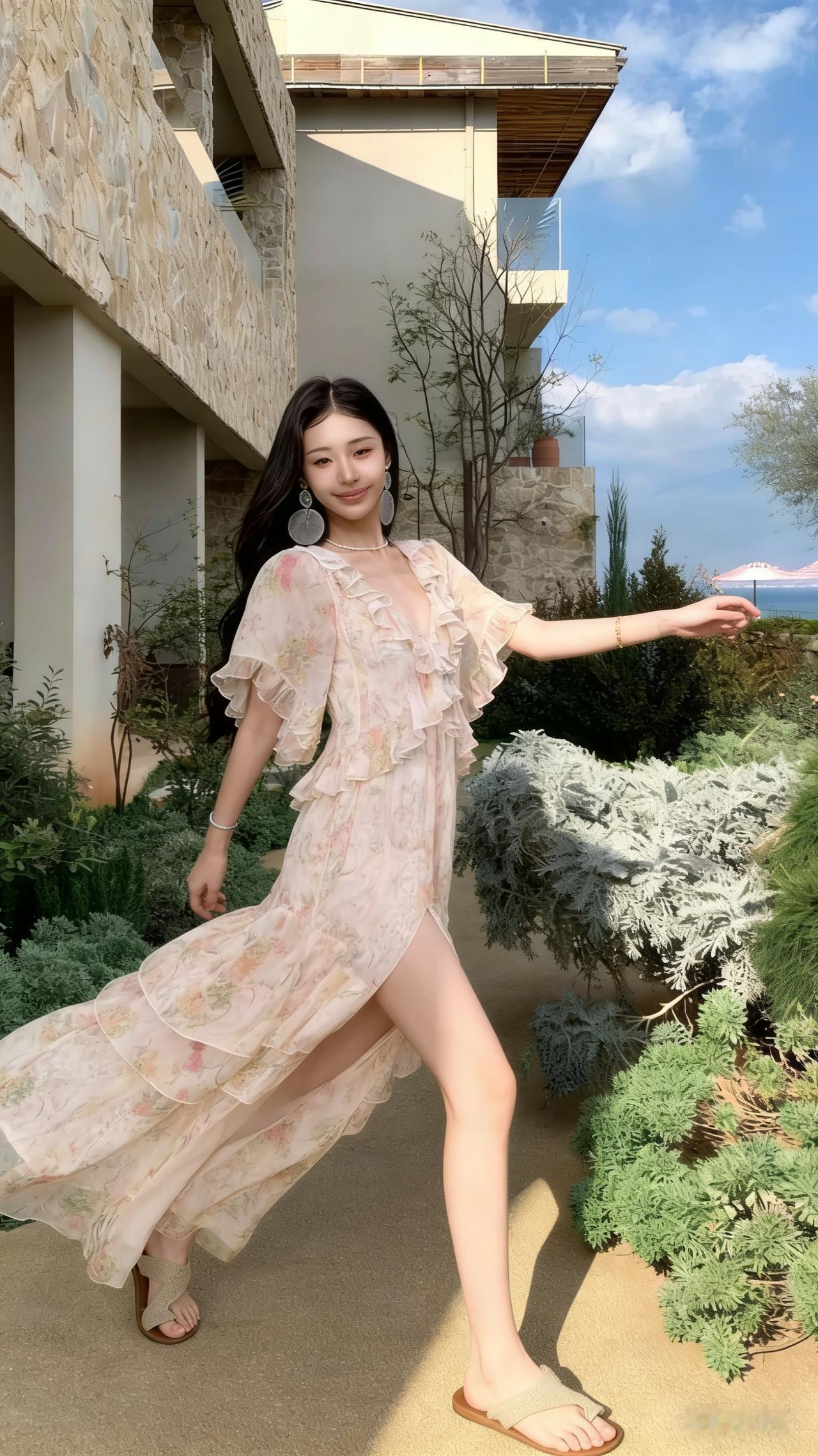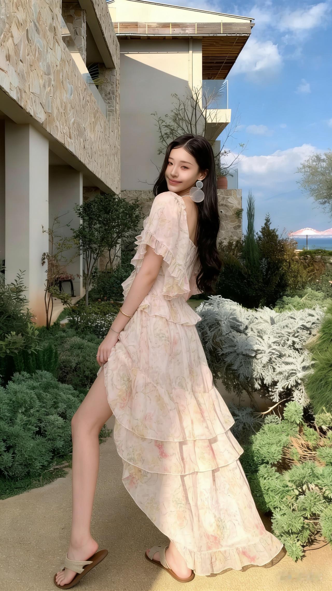 夏日花园中的甜美少女,轻纱裙摆随风飘逸,阳光洒满笑颜。🌸💃🌞 看看气质女神