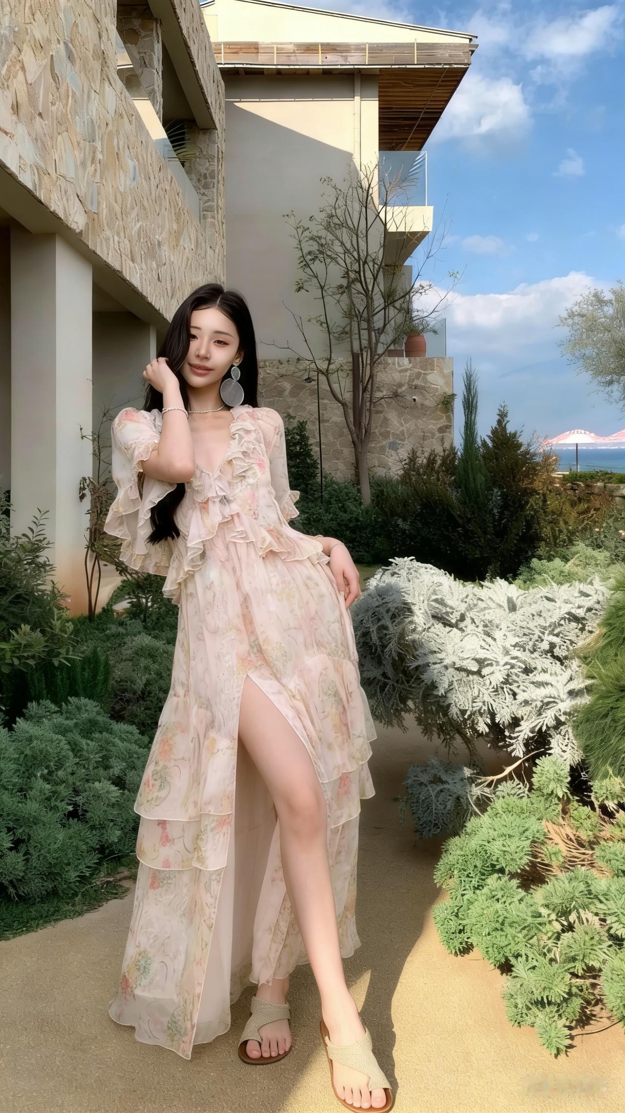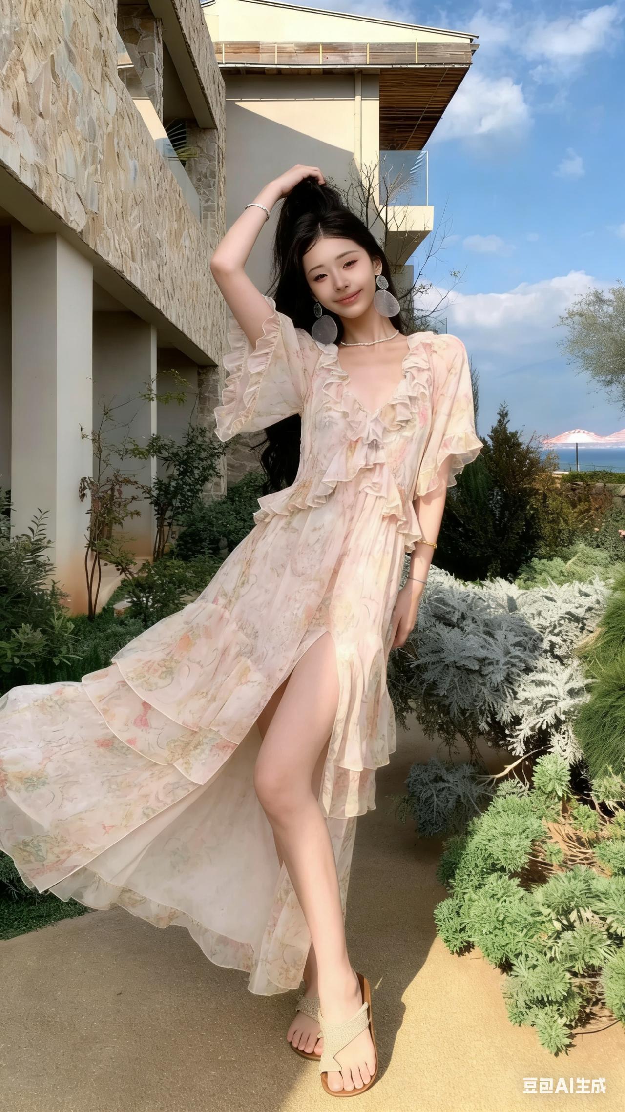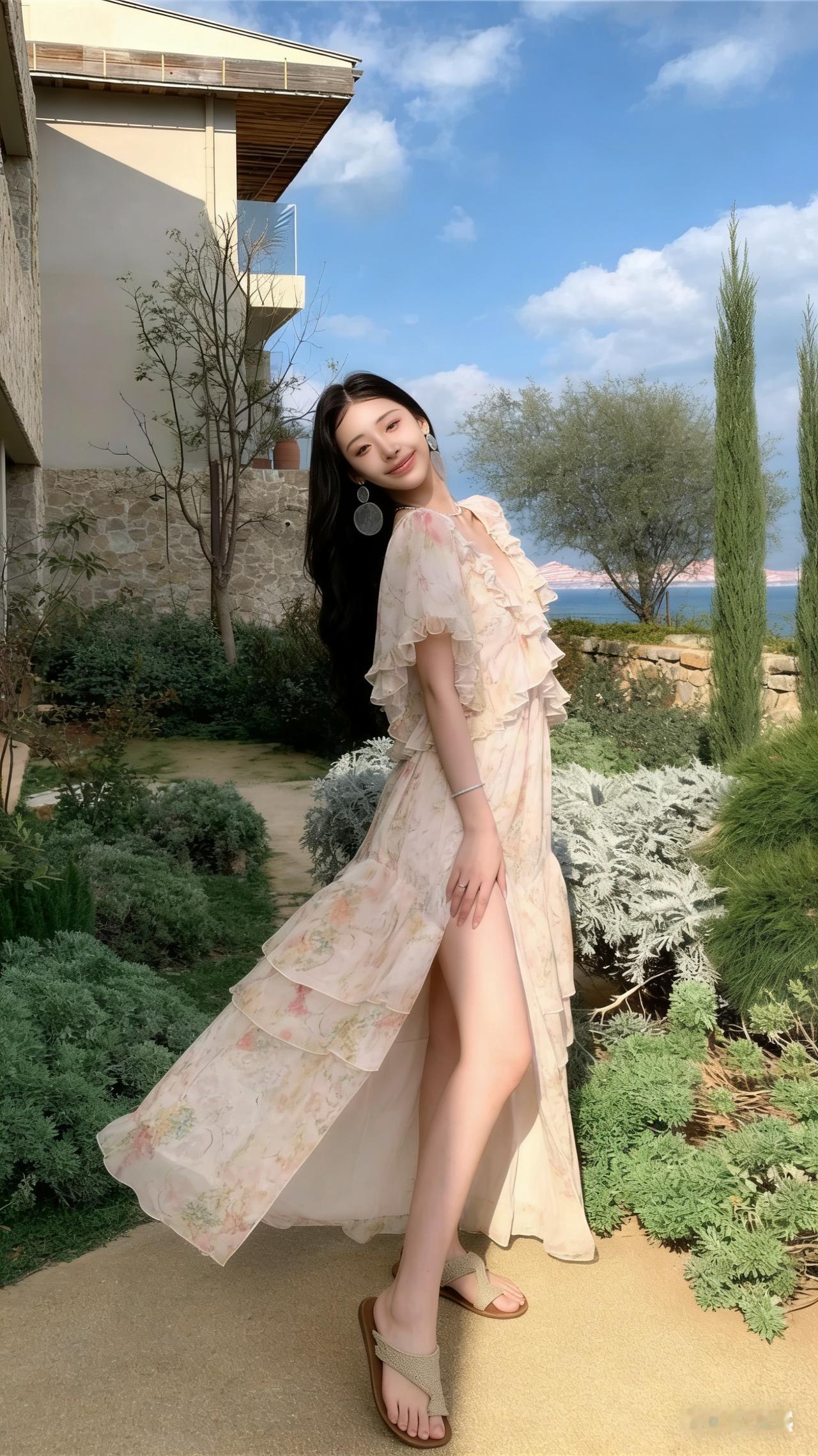 夏日花园中的甜美少女,轻纱裙摆随风飘逸,阳光洒满笑颜。🌸💃🌞 看看气质女神
