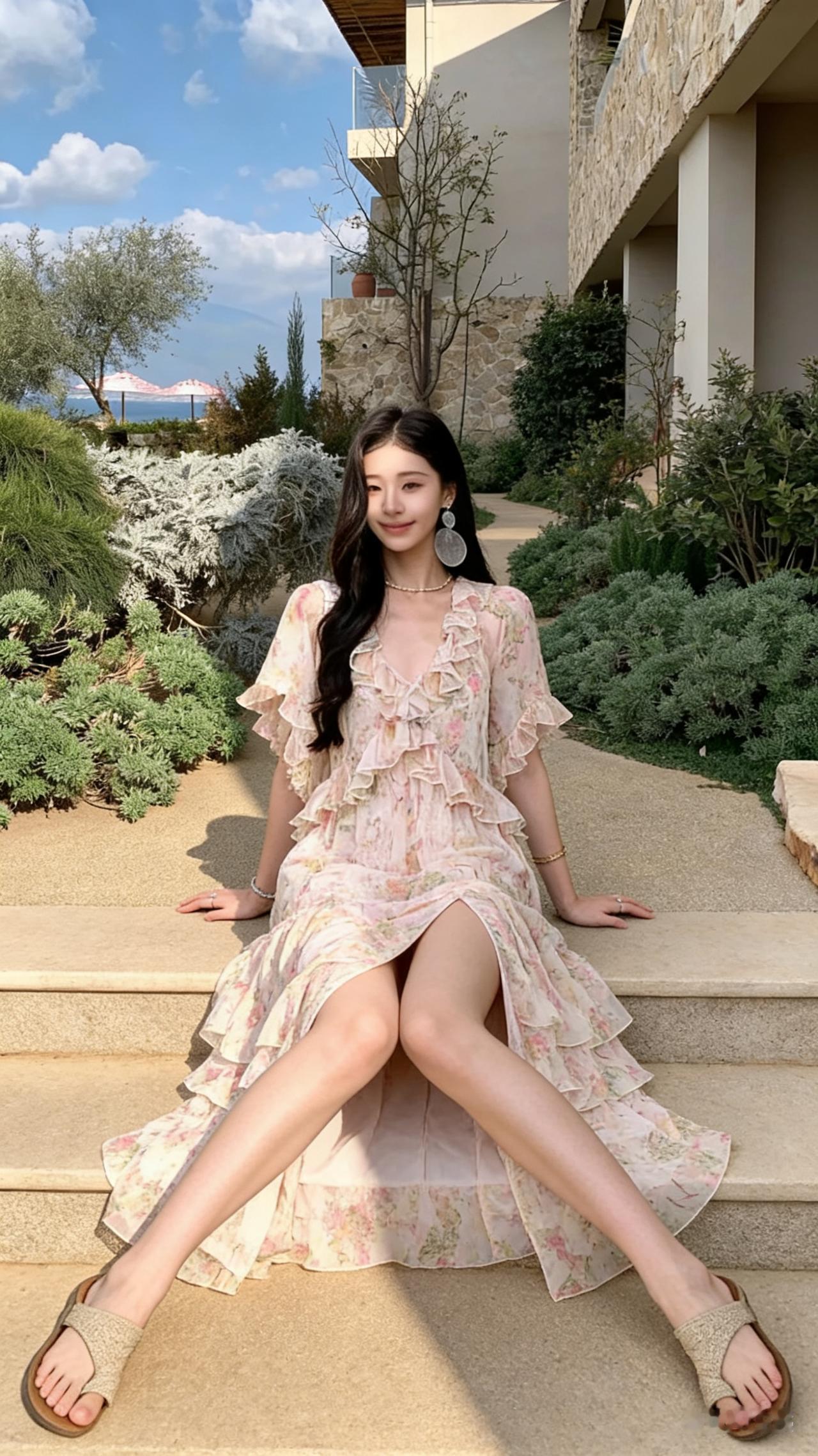 夏日花园中的甜美少女,轻纱裙摆随风飘逸,阳光洒满笑颜。🌸💃🌞