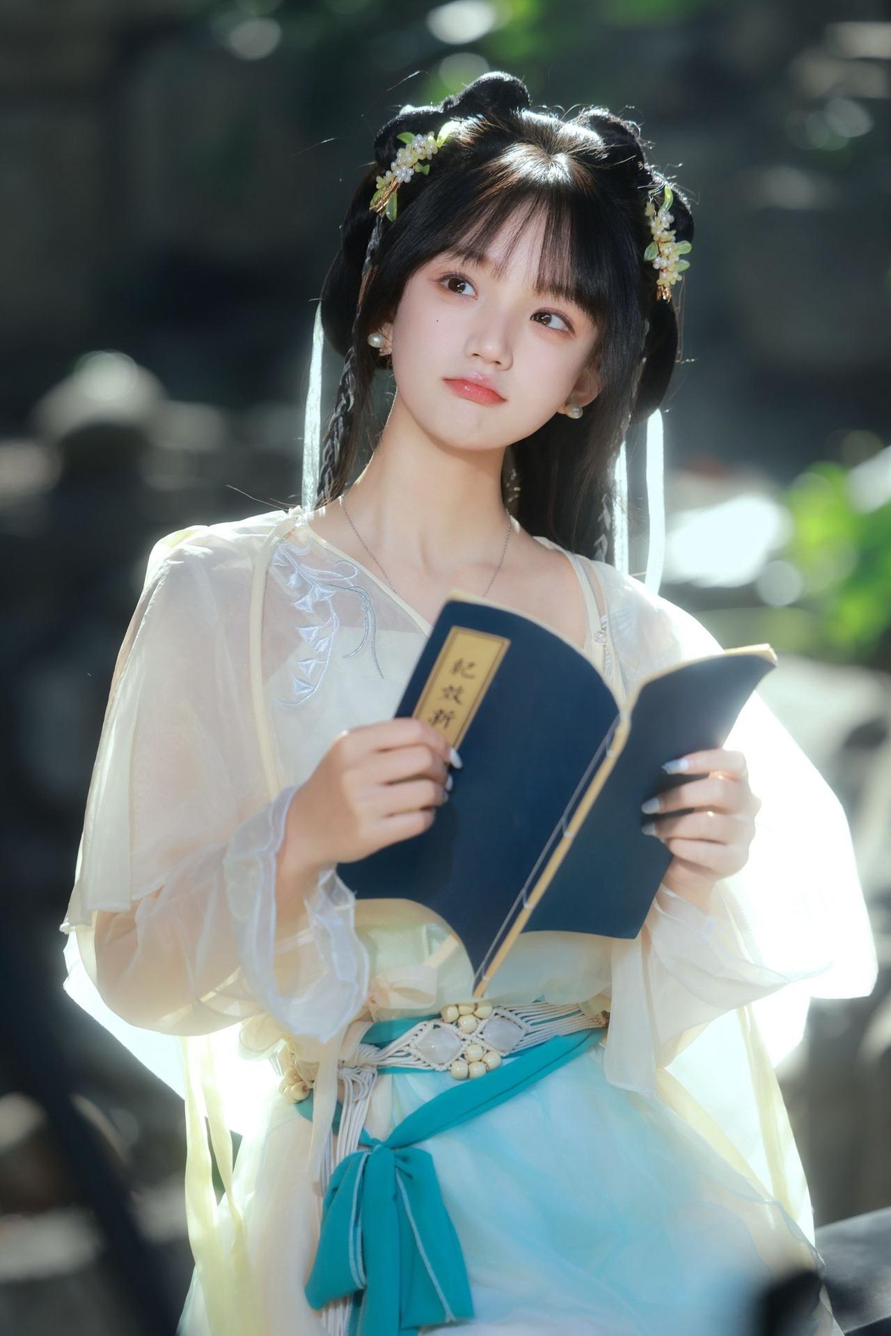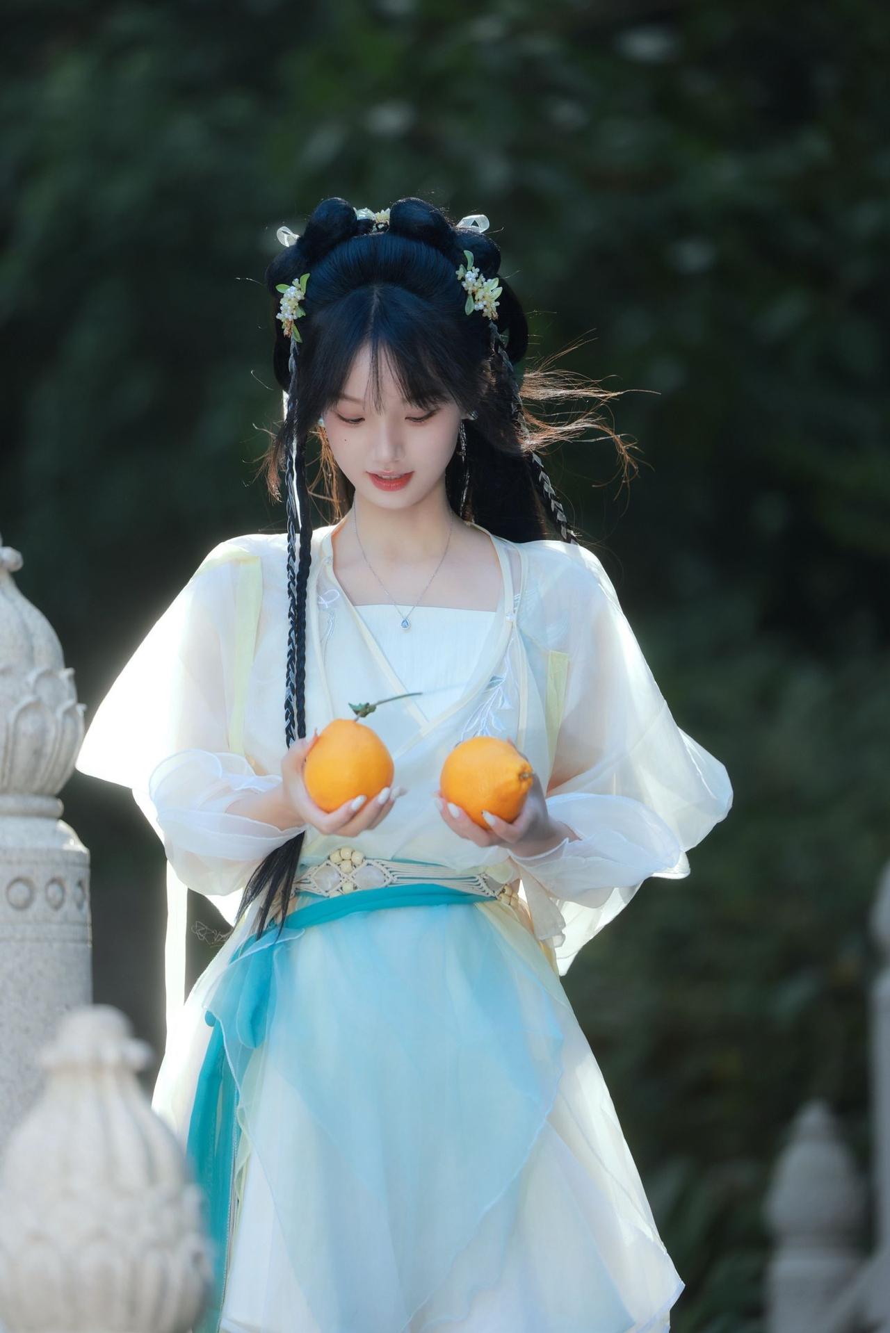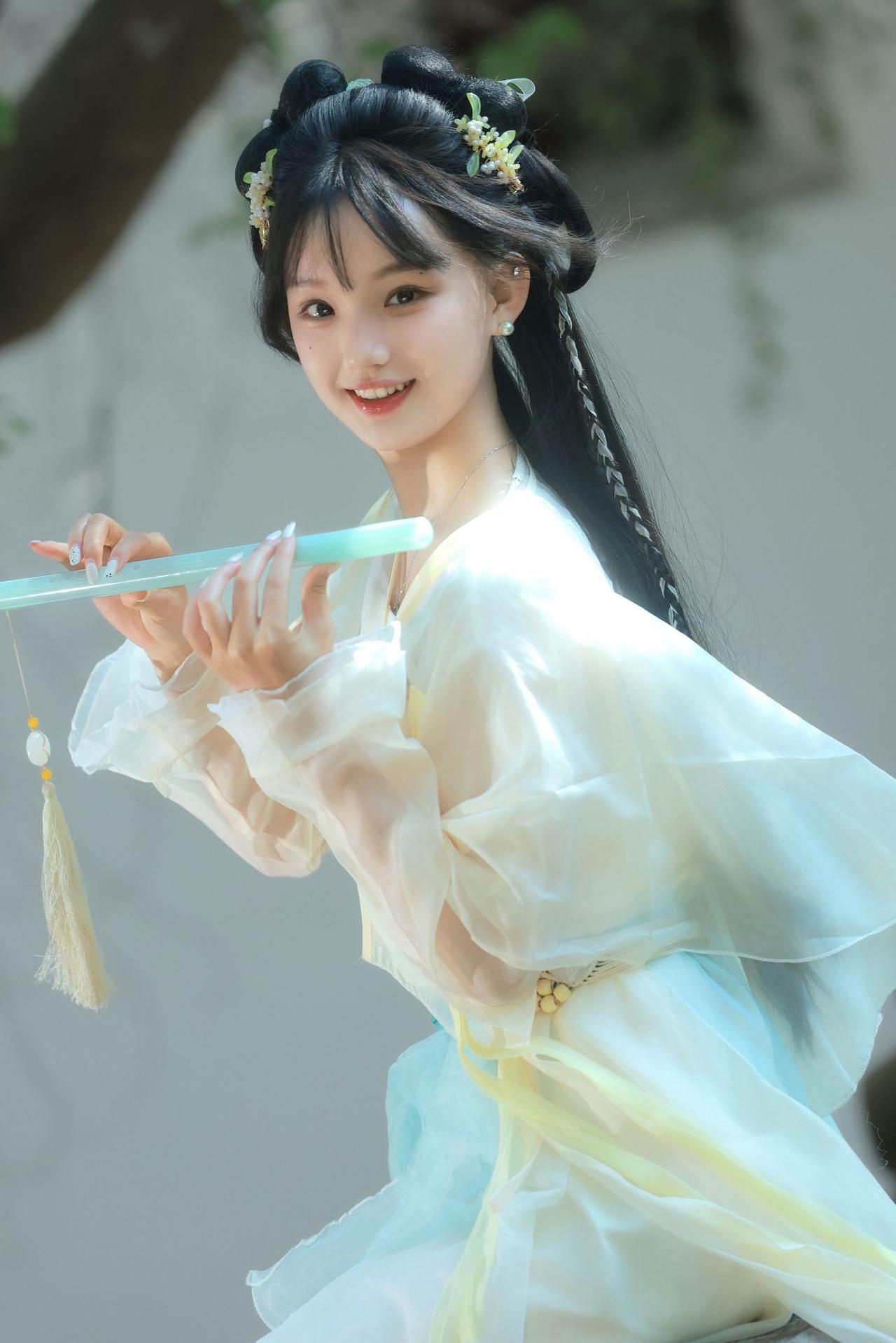 古风少女,轻纱拂面,花簪点缀,古典韵味十足。古典发簪盘发 古典气质发簪 古风发饰