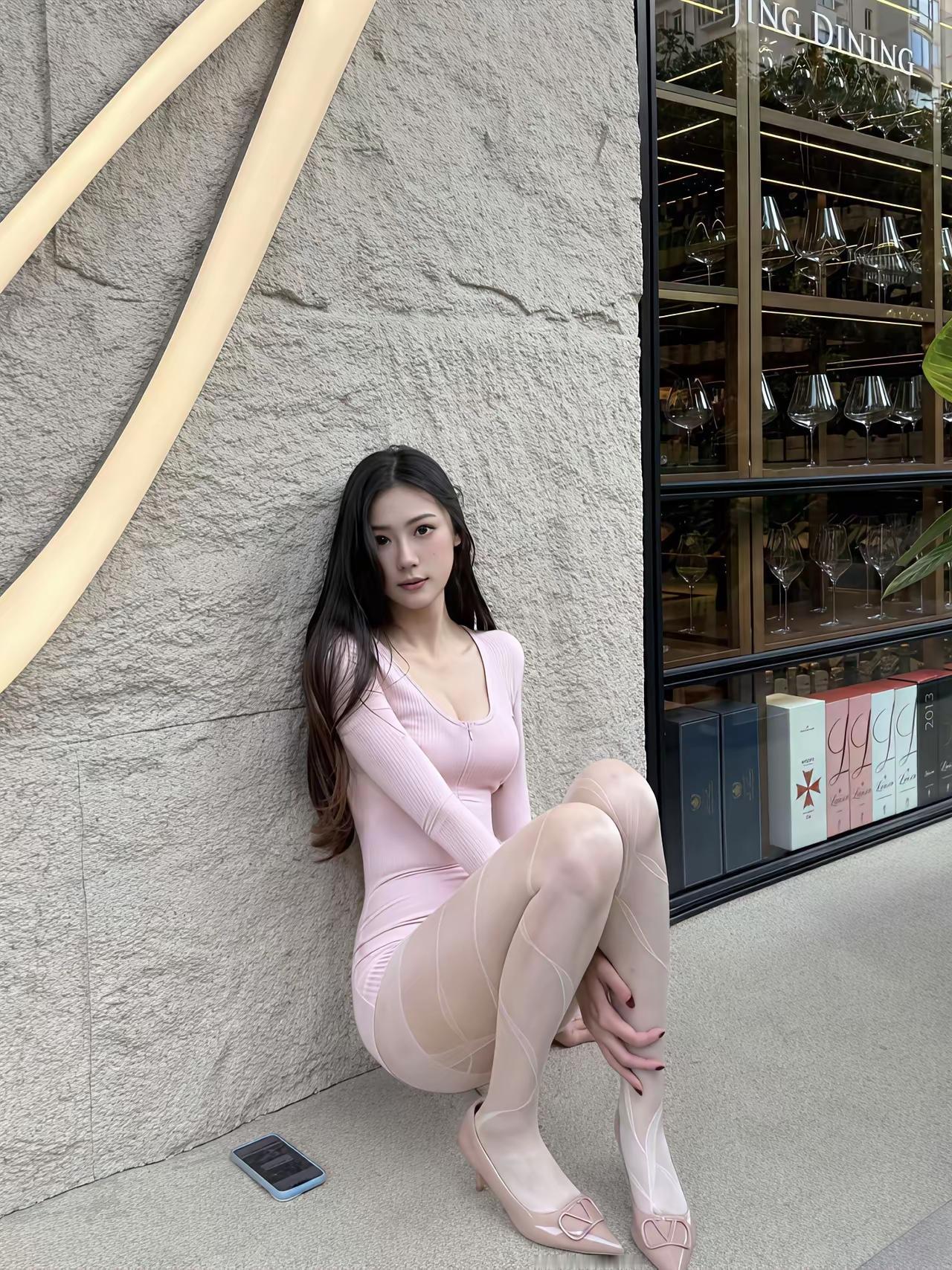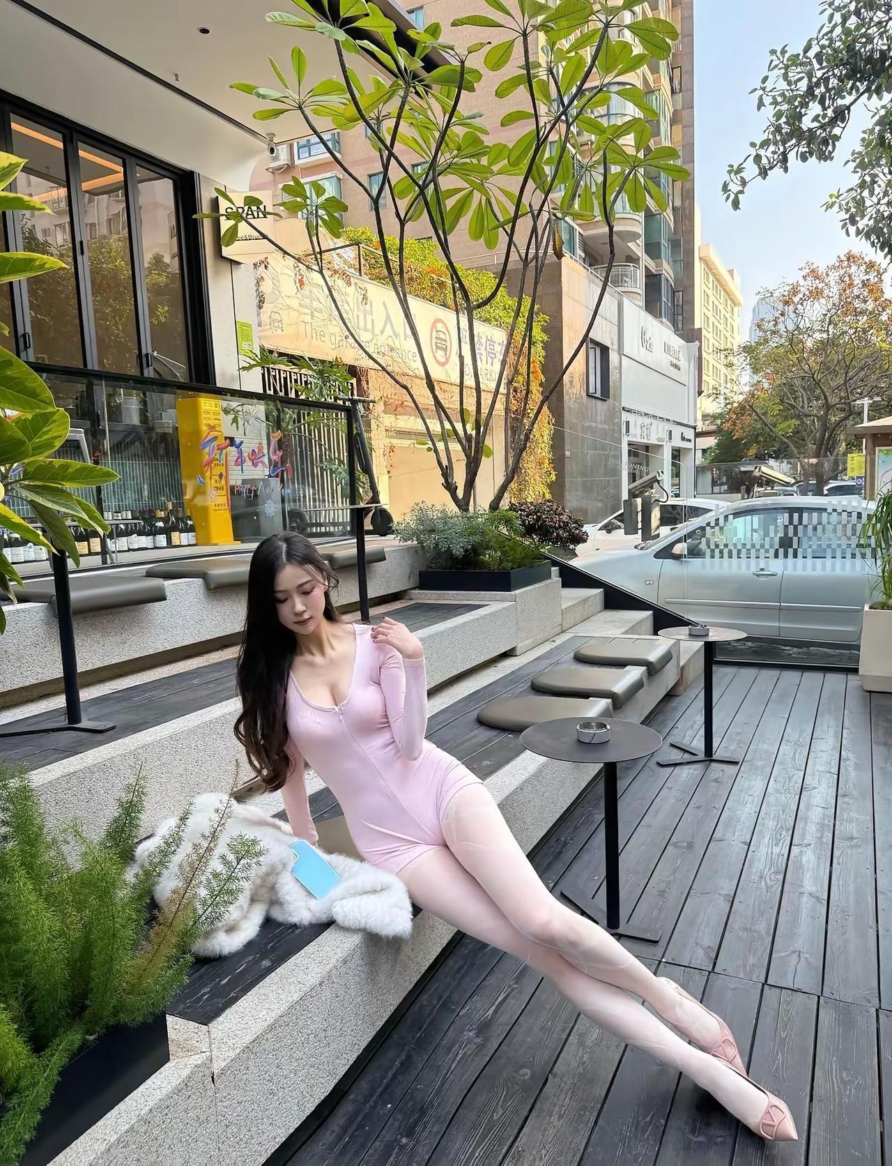优雅气质,粉色长裙,都市时尚