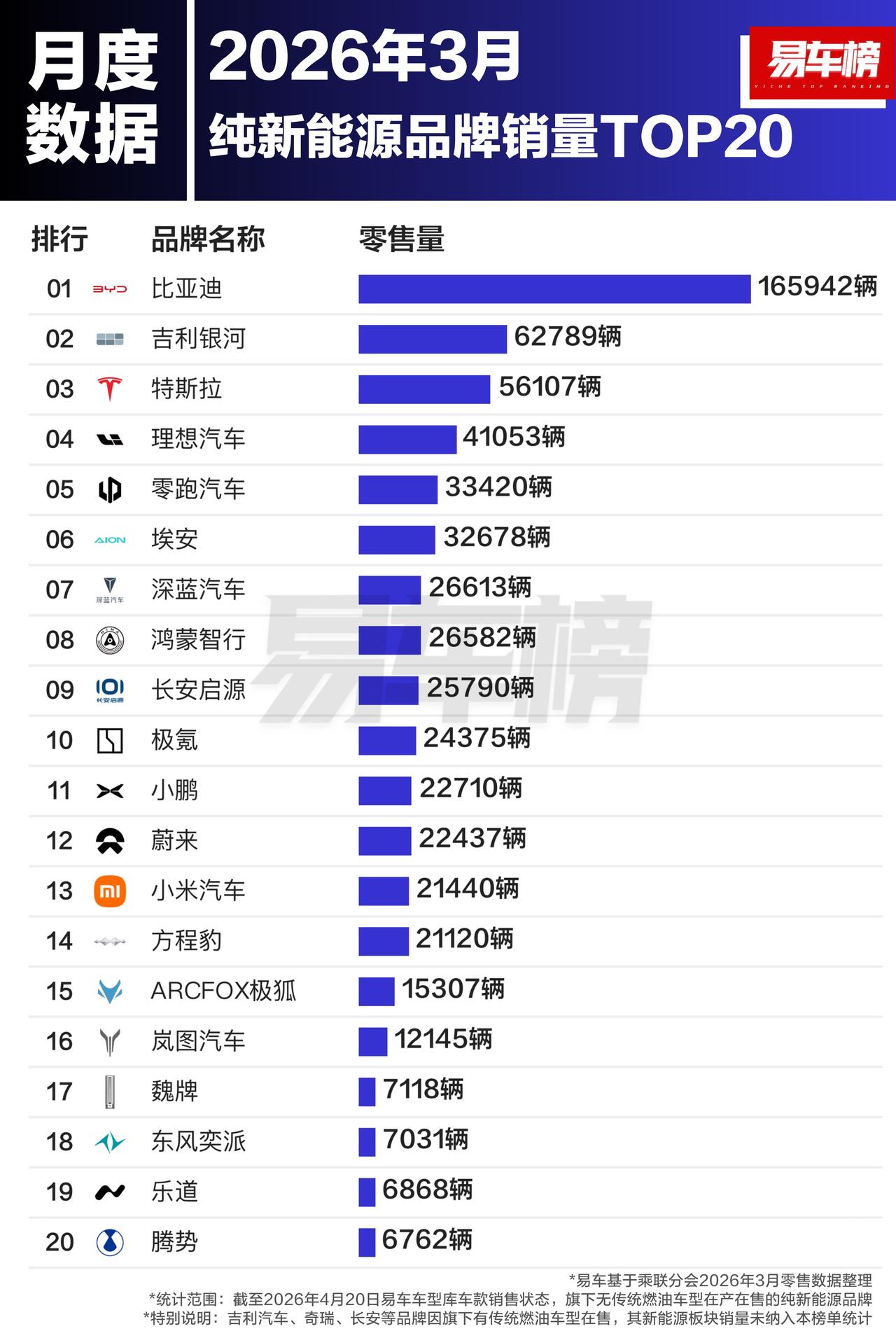 今年前3个月国内卖的最好的20个新能源汽车品牌: