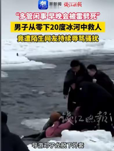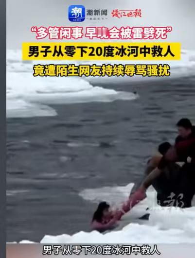 新疆,男子在零下20度的冰河里,救了一个女子,结果居然遭遇他人的辱骂,骚扰,他们说男子,多管闲事,早晚会被雷劈死,做了好事,被人如此骚扰辱骂,男子真的感到很心寒。