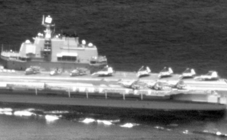 在4月17日,日本海上自卫队出动雷号驱逐舰,穿航了台湾海峡,结果不到48-72小时,不仅中国海军052D驱逐舰编队,穿航横当海峡,直奔西太平洋,甚至绕日本航行,解放军海军辽宁号航母居然满载着歼-15舰载机,通过了台湾海峡!按照中国台湾省媒体的报道,台军指出,“解放军辽宁号航空母舰今天航经台湾海峡,台军密切监控”。“根据台军发布的监控照片,可清晰看到辽宁舰飞行甲板上的舰载战斗机、直升机。”,“舷号16清晰可见”。台军侦察辽宁号航母战斗群,主要由台空军RF-16侦察机,挂载“凤眼”侦察吊舱,执行侦察任务,从辽宁号航母侧后上方拍摄。照片为黑白,画质相对一般,但能清晰辨识舰号“16”、飞行甲板及至少8架歼-15舰载机。