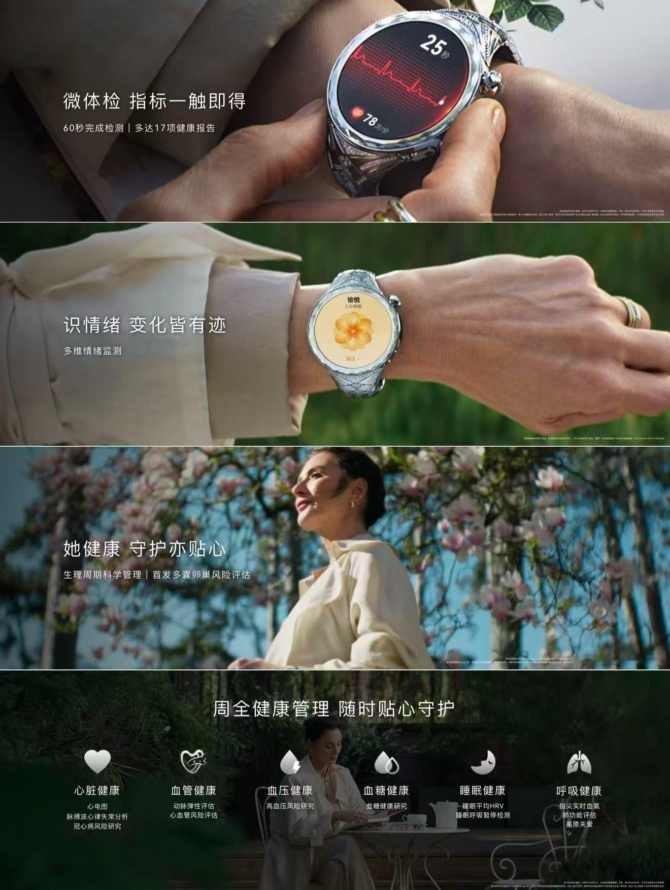 这款华为星钻手镯表是华为首款珠宝级智能腕表,由华为联合曾担任 Tiffany & Co. 首位女性设计总监Francesca Amfitheatrof 一起设计的珠宝级外观:星环蓝宝石玻璃表圈、兰花镶钻表冠,表带镶嵌 98 颗钻石,微米级一体化蓝宝石钻切工艺等,看着是真精致真高级啊29999元华为非凡大师女表已售罄