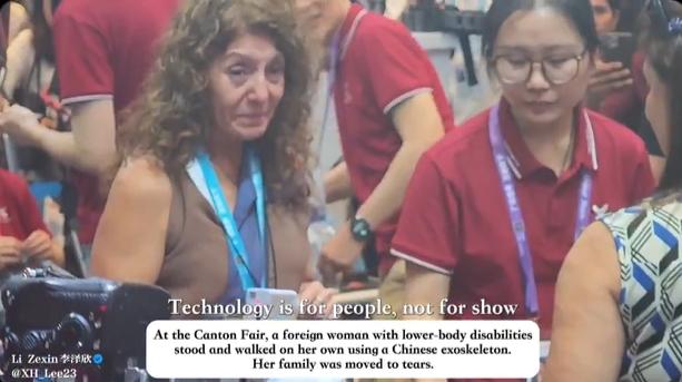 广交会上感人的一幕!外国残疾女孩重新站立行走,一旁的老母亲激动落泪。