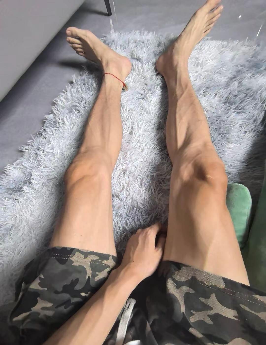 这青筋像“虫子”一样 展示腿部肌肉 腿长一米八