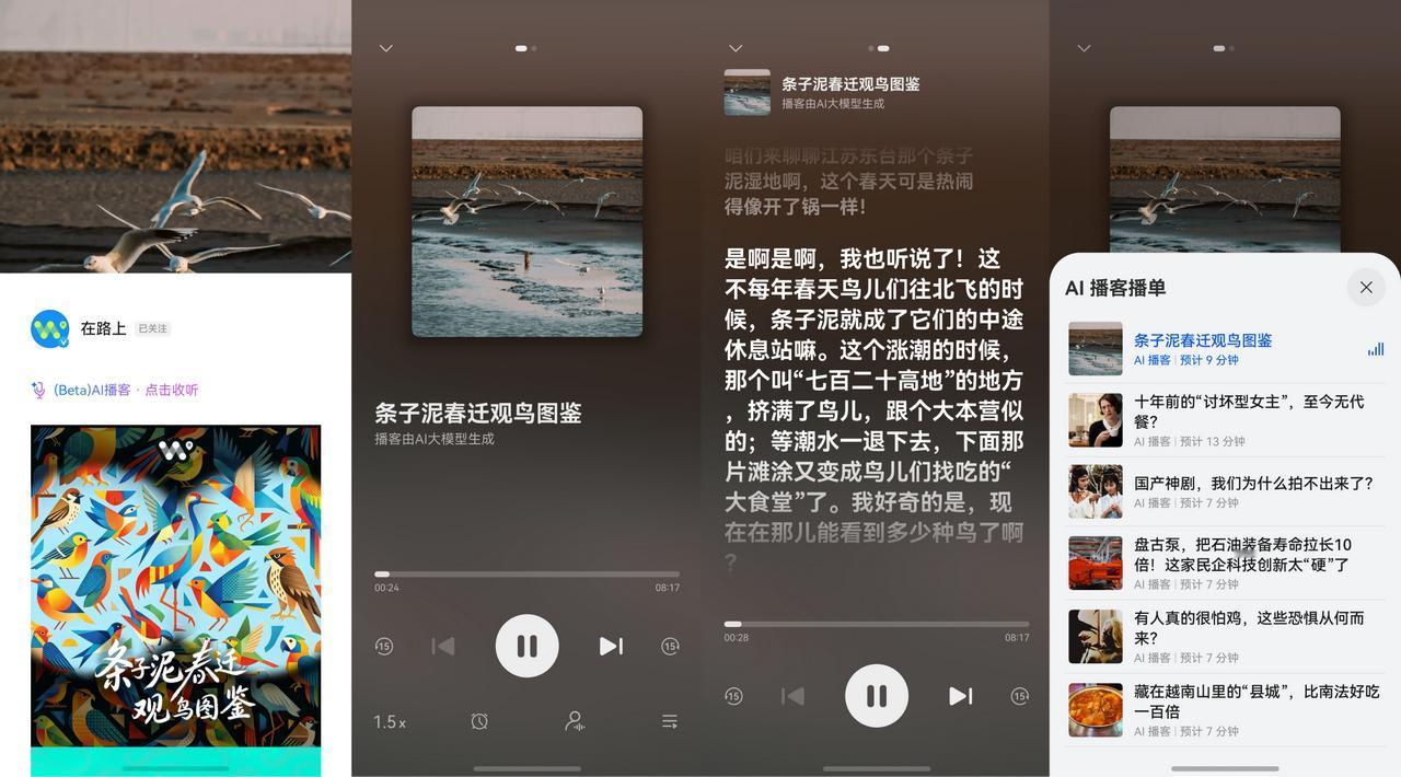 我发现华为浏览器的AI播客功能真的太好用了。睡前打开华为浏览器里面视界频道,找一篇感兴趣的文章,比如《在路上》新专栏里的《泥子条春迁观鸟图鉴》,点文章开头彩色的“AI播客 · 点击收听”入口,文章的文字内容就变成两个AI主播一起聊天的音频节目。这两个AI“主播”语气特别舒服,像朋友的睡前闲聊,跟你说“哪个地方下午三四点光线最好”“哪个地方观鸟位绝佳”。
