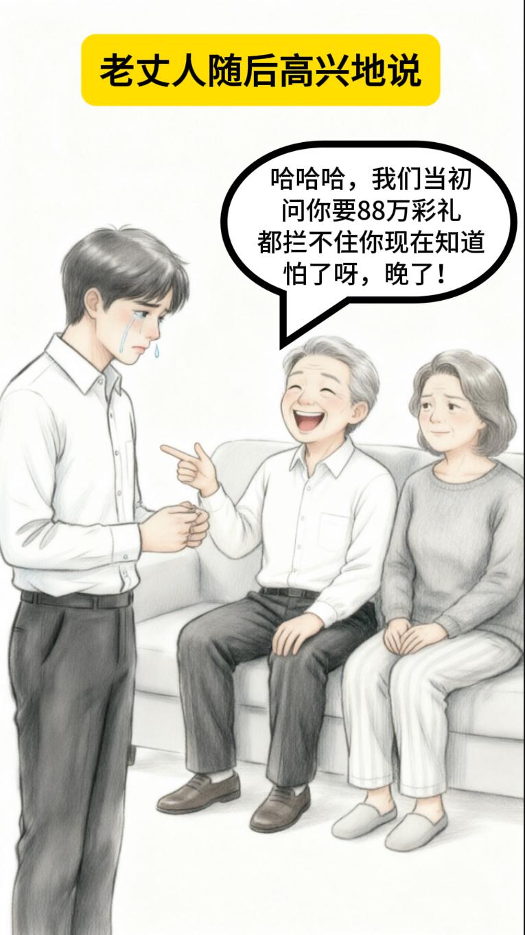 老丈人:哈哈哈,当初我们问你要88万彩礼都拦不住,你现在知道怕了呀,晚了