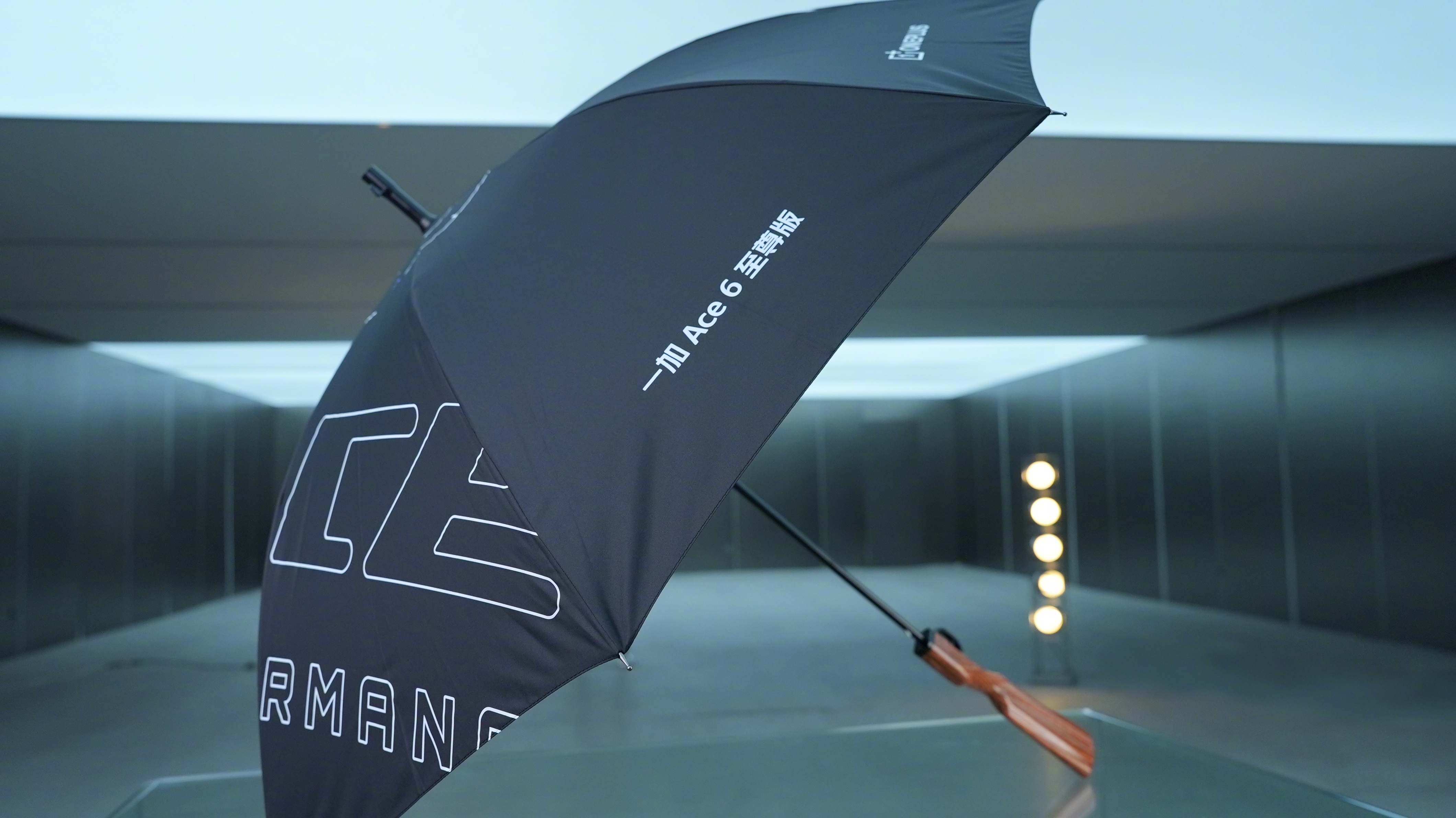 一加 Ace 6至尊版邀请函太特殊了!一把枪型手柄雨伞!跟枪神游戏手柄太契合了,