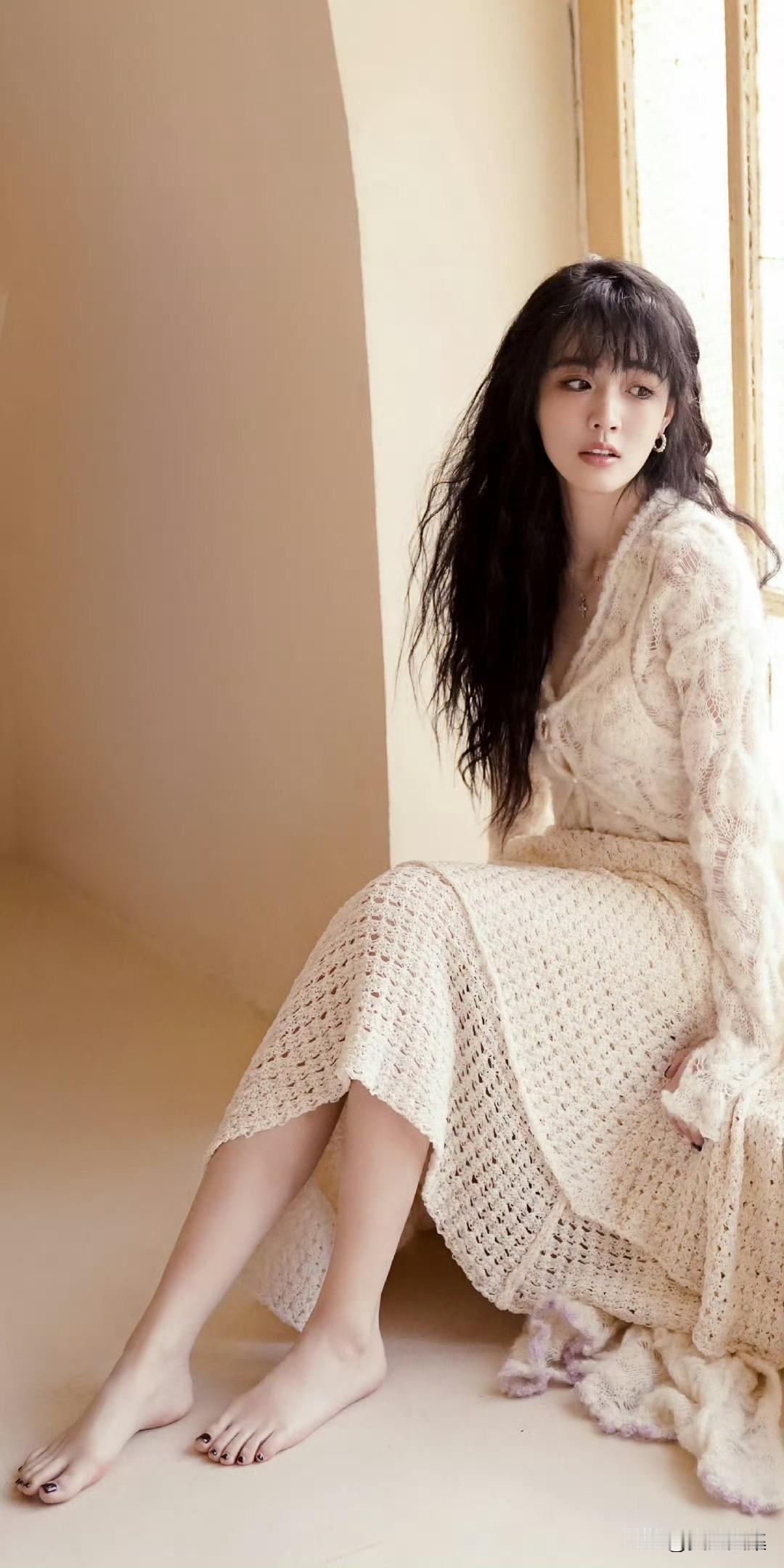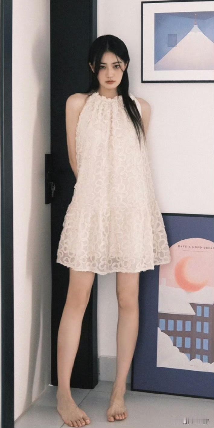 她微微歪着头,蓬松的头发自然散落,眼神灵动而清澈,仿佛藏着无数的小秘密。那白皙的皮肤,在光影的映衬下,显得更加细腻。这组壁纸就像把生活里的美好瞬间定格,每次看到,心情都会跟着变好,感觉自己也被这份甜美感染啦。 怎样穿搭让自己更美 徐璐抹胸裙 灵动脚丫子