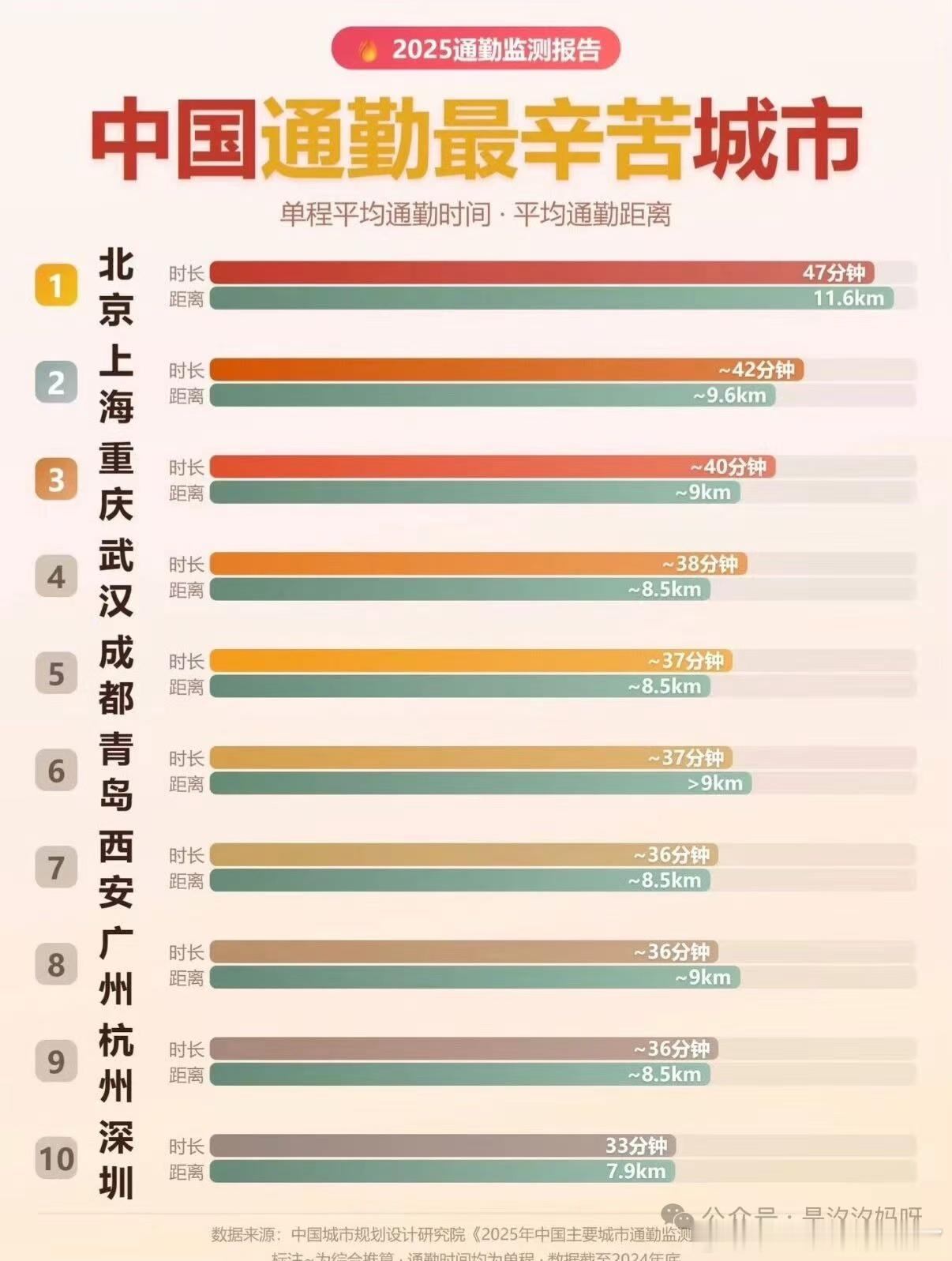 中国通勤最辛苦城市排名