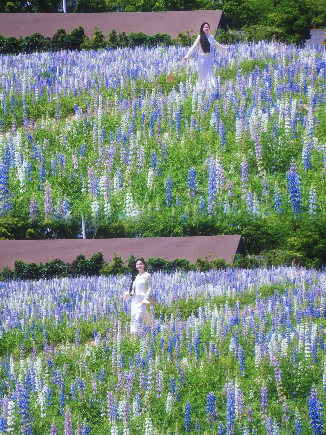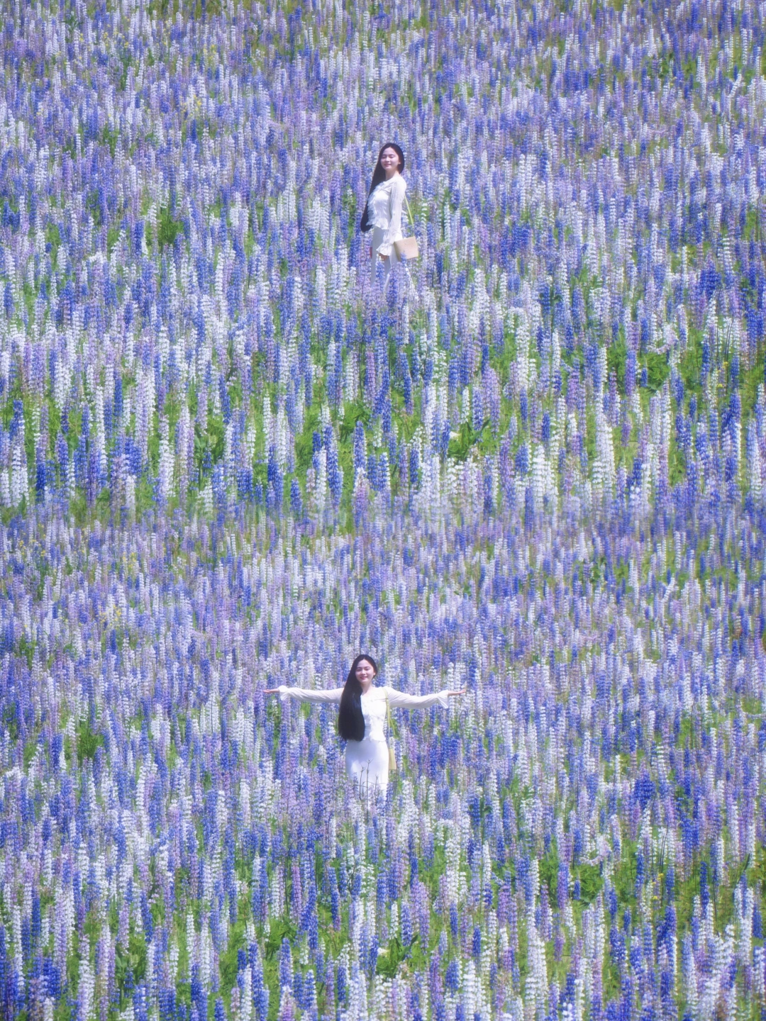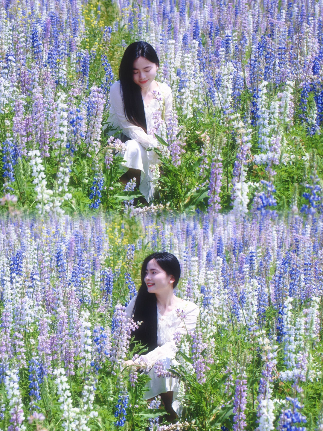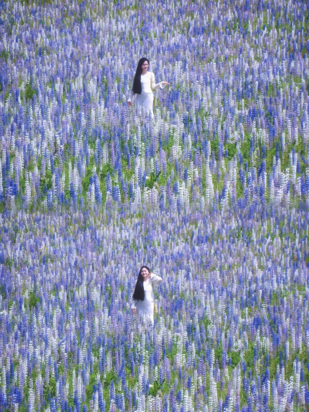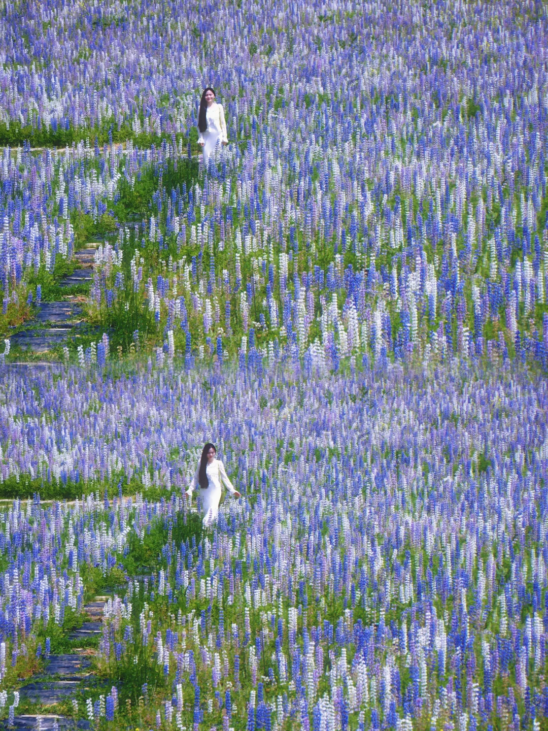 一大片鲁冰花开得正盛,色彩斑斓,层叠起伏,美得像打翻了调色盘~