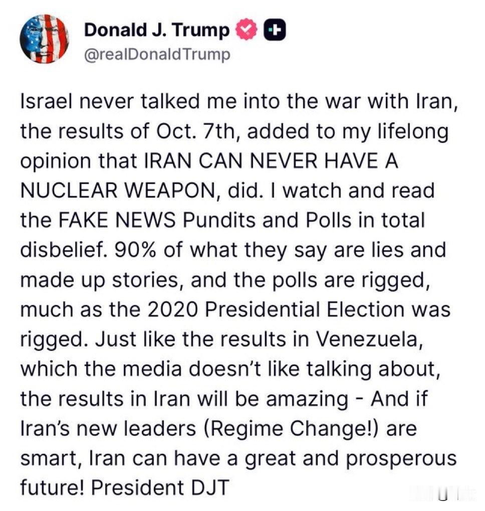 文中他还强调如果伊朗新领导人(政权更迭)足够聪明,伊朗完全可以拥有美好的未来。