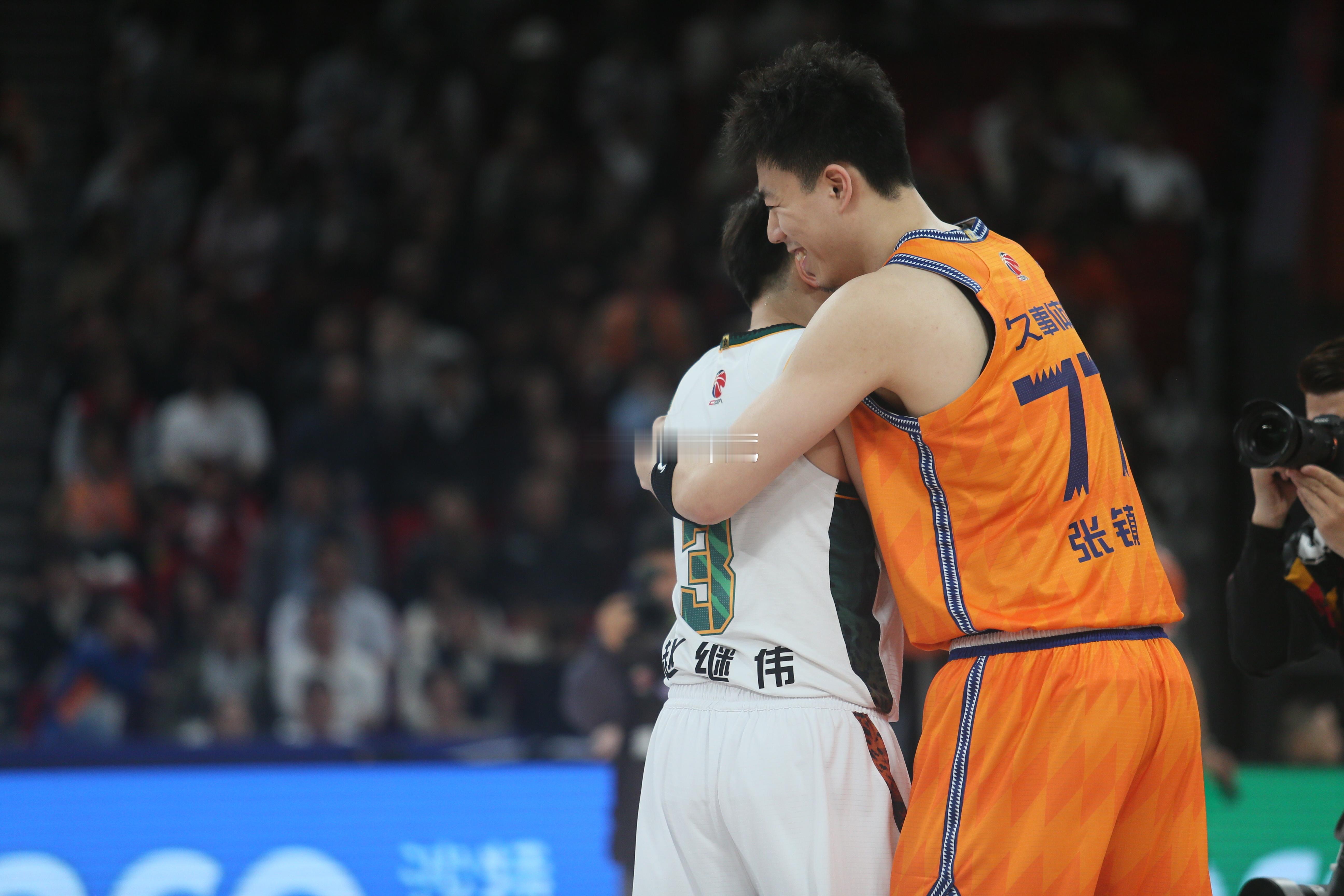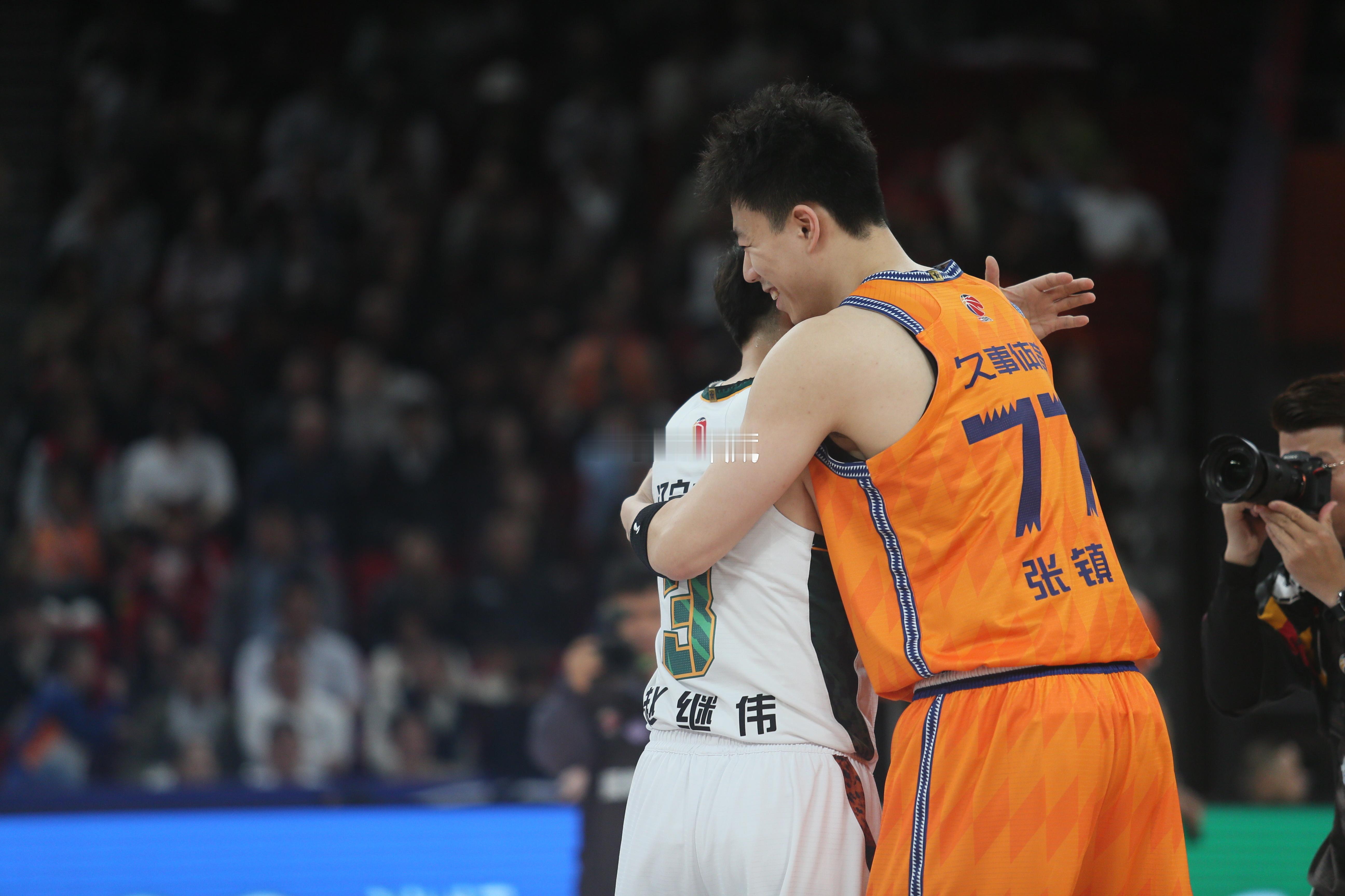 赵继伟与张镇麟赛前相拥,曾经的队友,如今在场上已经各为其主。赵继伟张镇麟