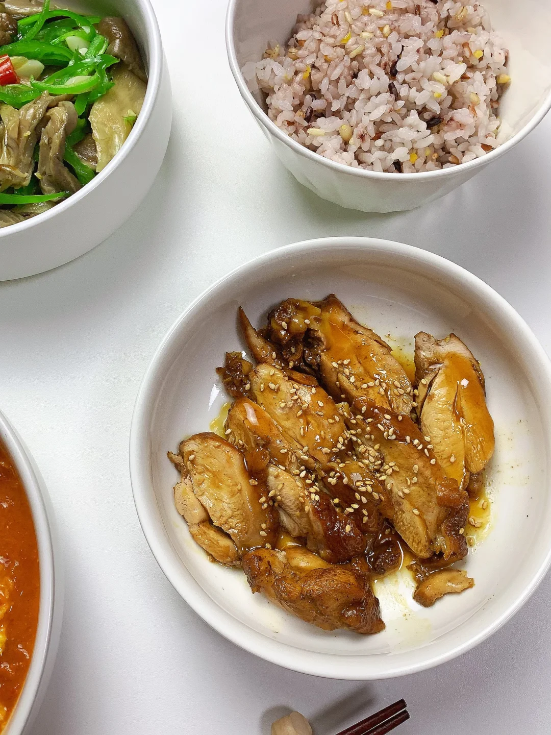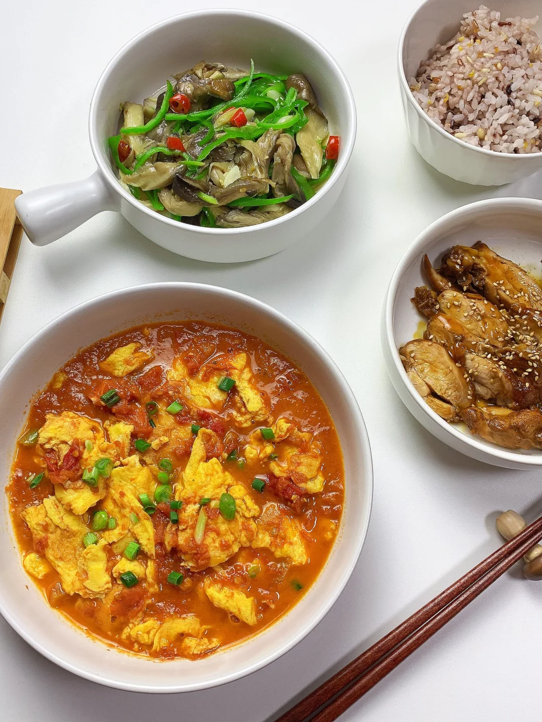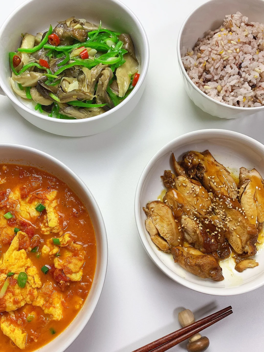 杂粮饭+嫩滑蛋白+清炒时蔬,营养均衡搭配✨