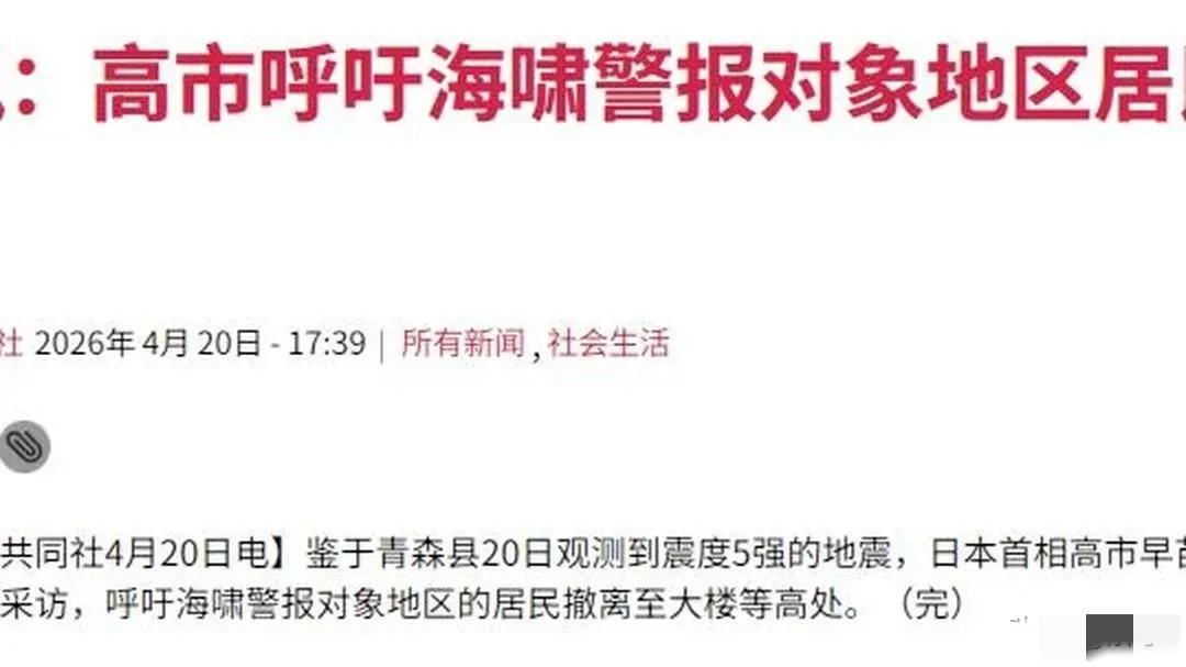 地震发生后,日本官员高市早苗立刻紧急喊话,让海啸警报区域的居民,赶紧躲到高楼和高地去避险。