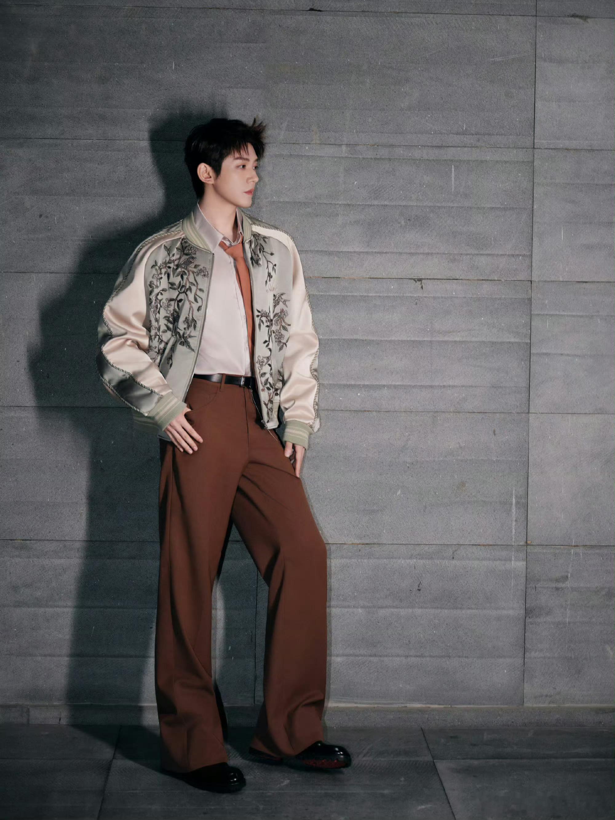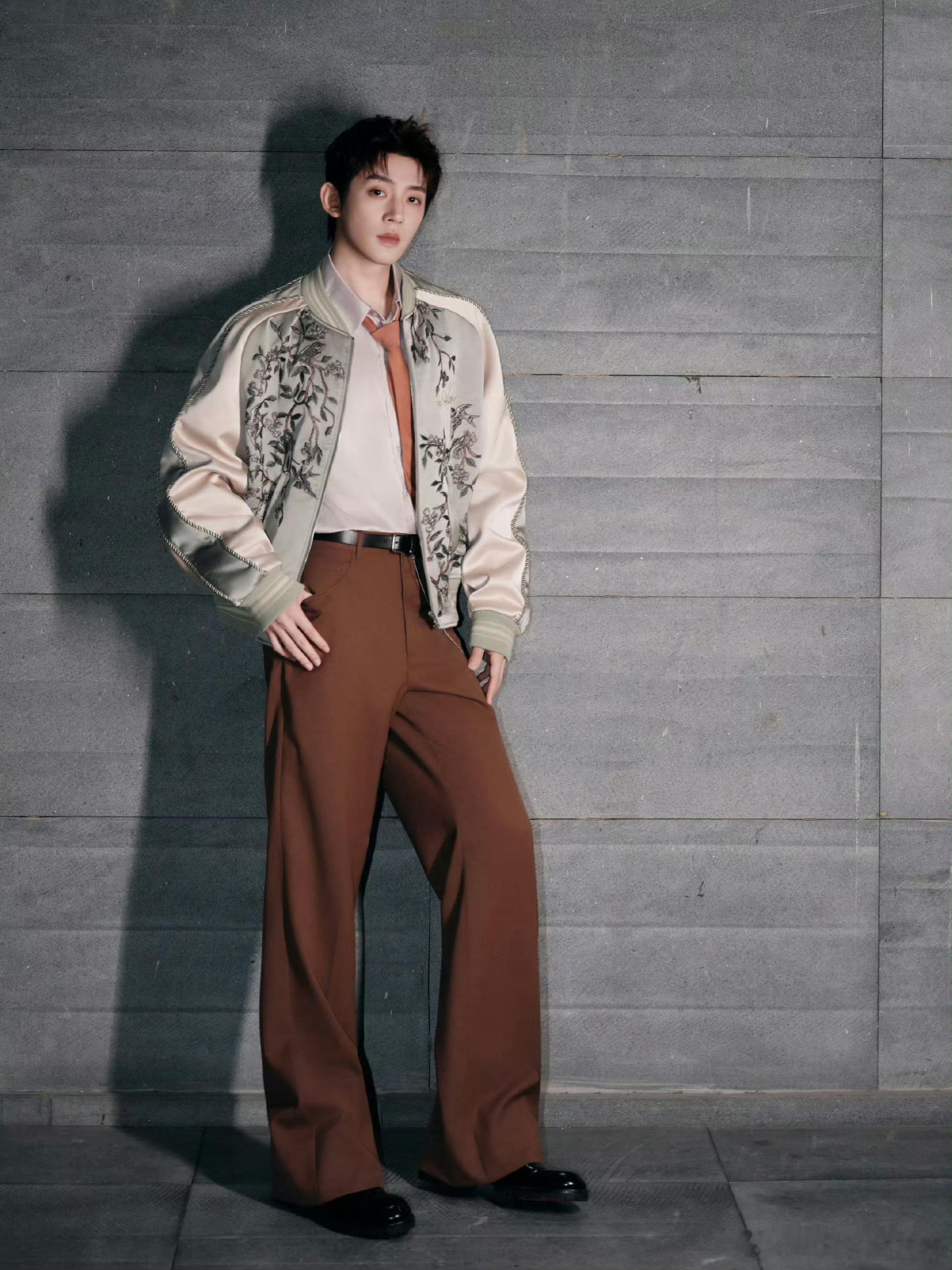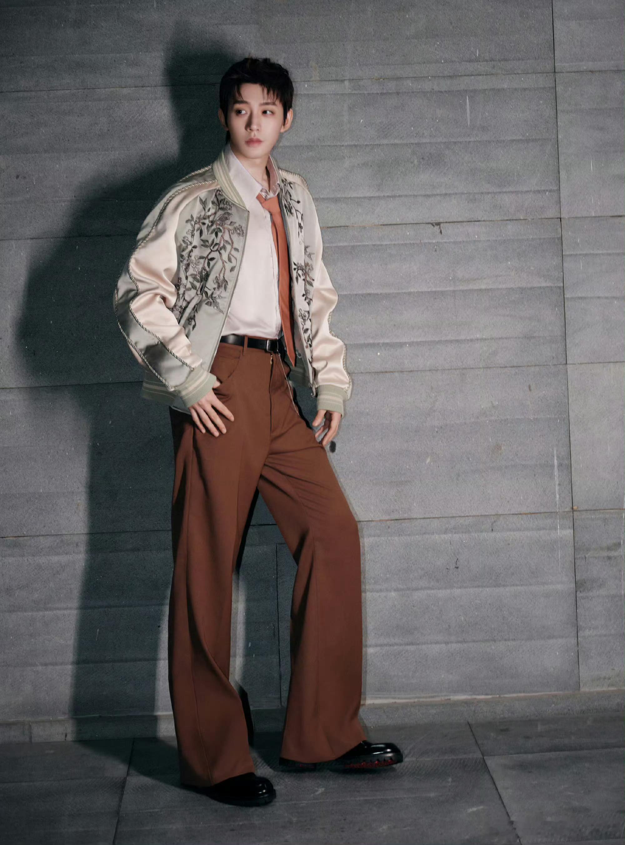 邓为今天一组大片,身穿Amiri 2026春夏系列刺绣夹克套装,今天还录制了五四晚会根正苗红青年